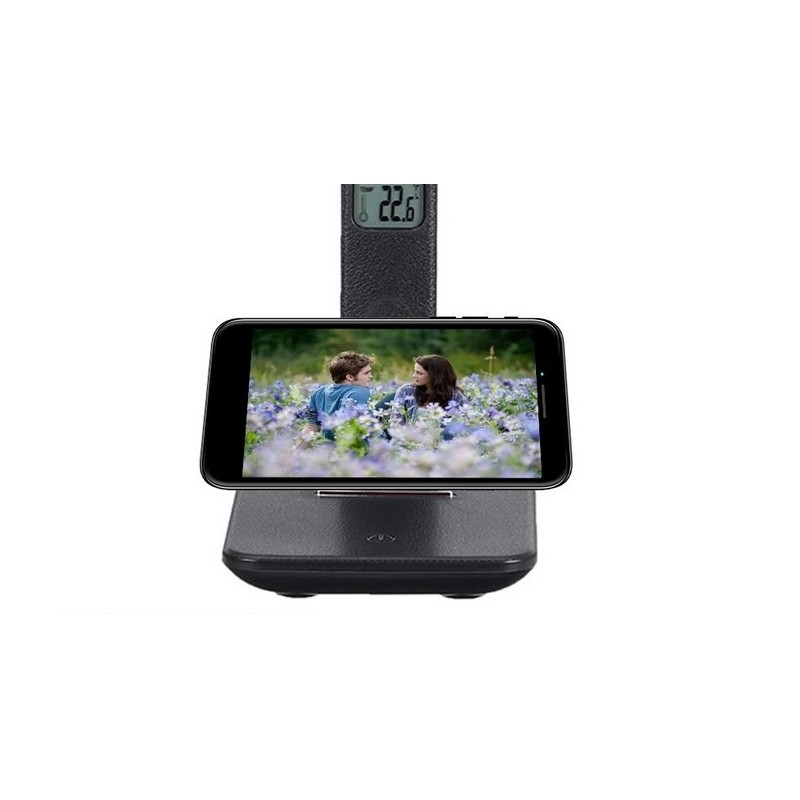 W lampie wbudowany jest wyświetlacz z godziną, temperaturą datą i możliwością ustawienia alarmu