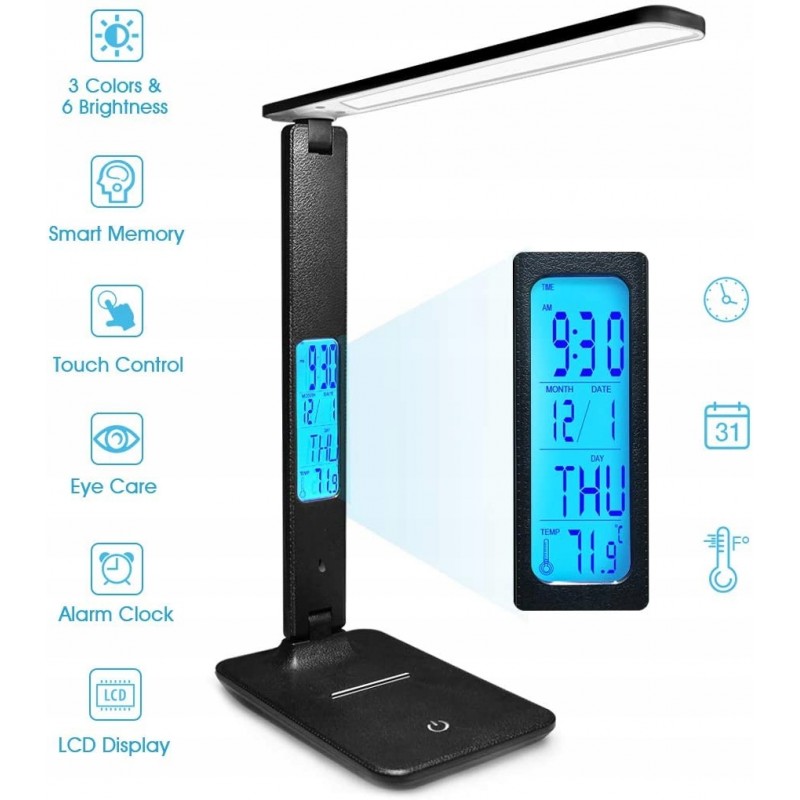 Lampka biurkowa biurko WYŚWIETLACZ LED Zegar Data