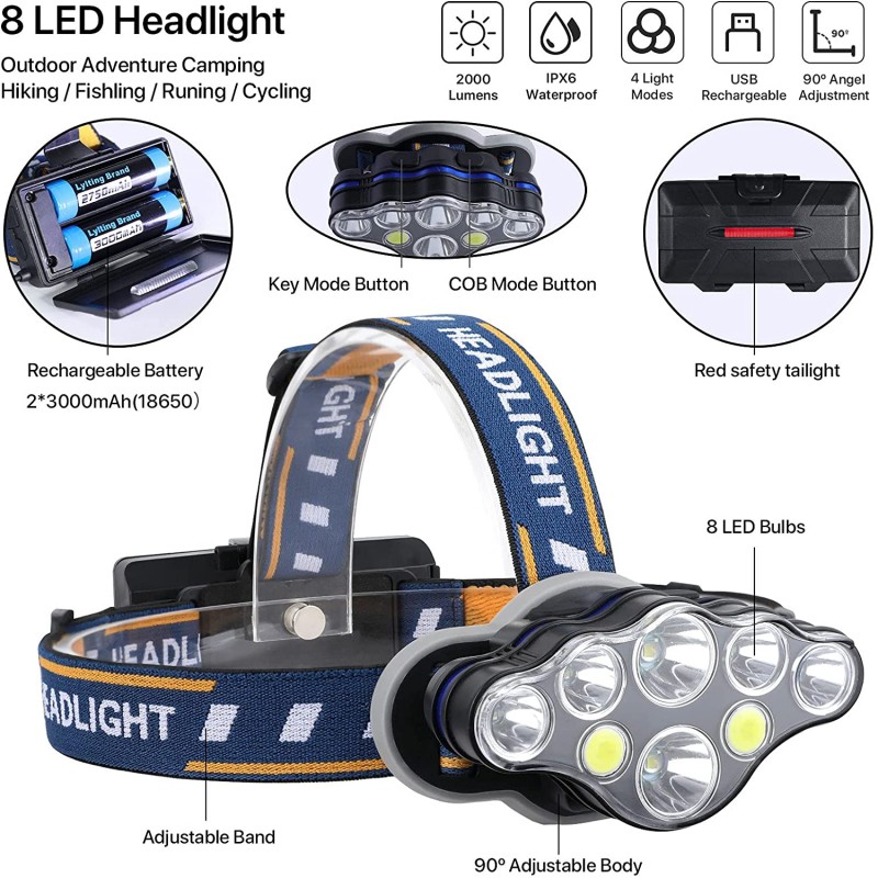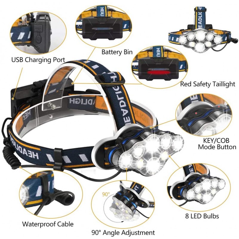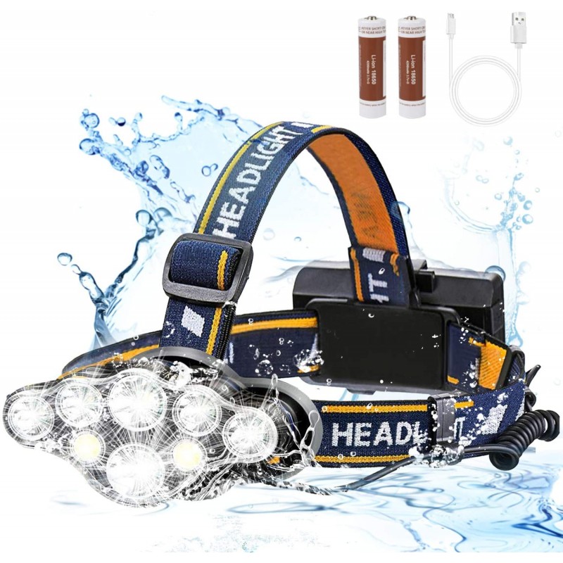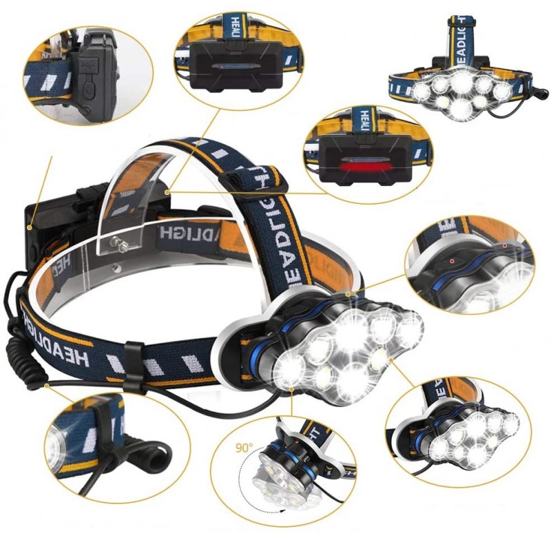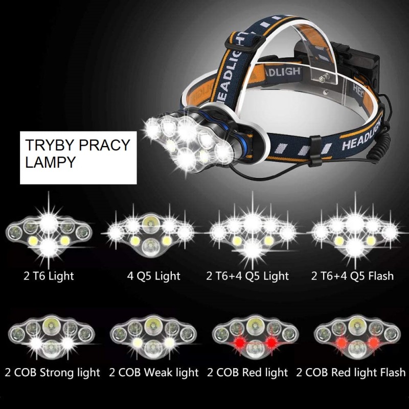 Nowoczesna i bardzo mocna latarka czołowa LED, która została wyposażona w 8 diód LED