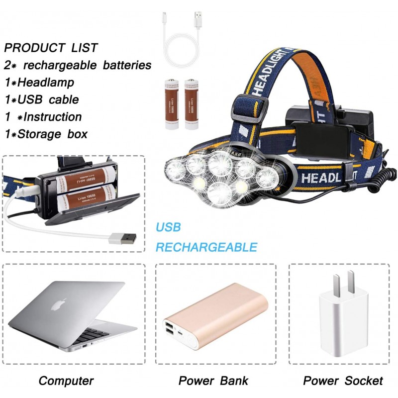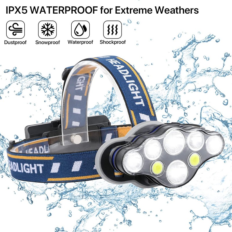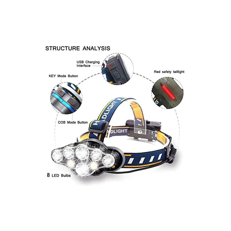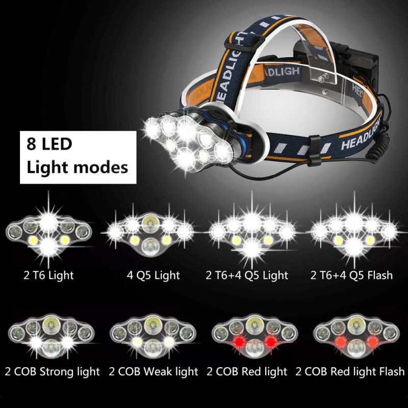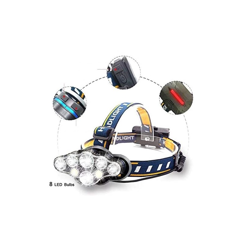 Nowoczesna i bardzo mocna latarka czołowa LED, która została wyposażona w 8 diód LED