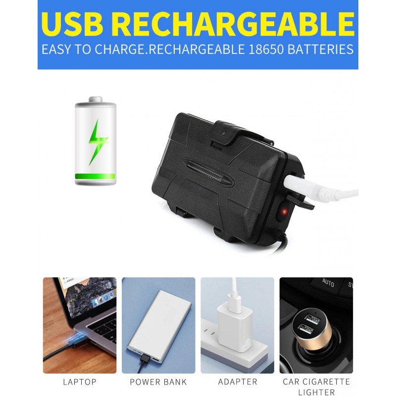 Do latarki są dołączone 2 akumulatorki 18650, 6600 mAh i kabel do ich ładowania z USB