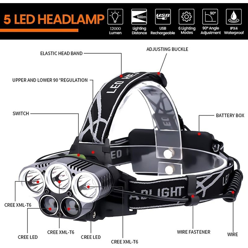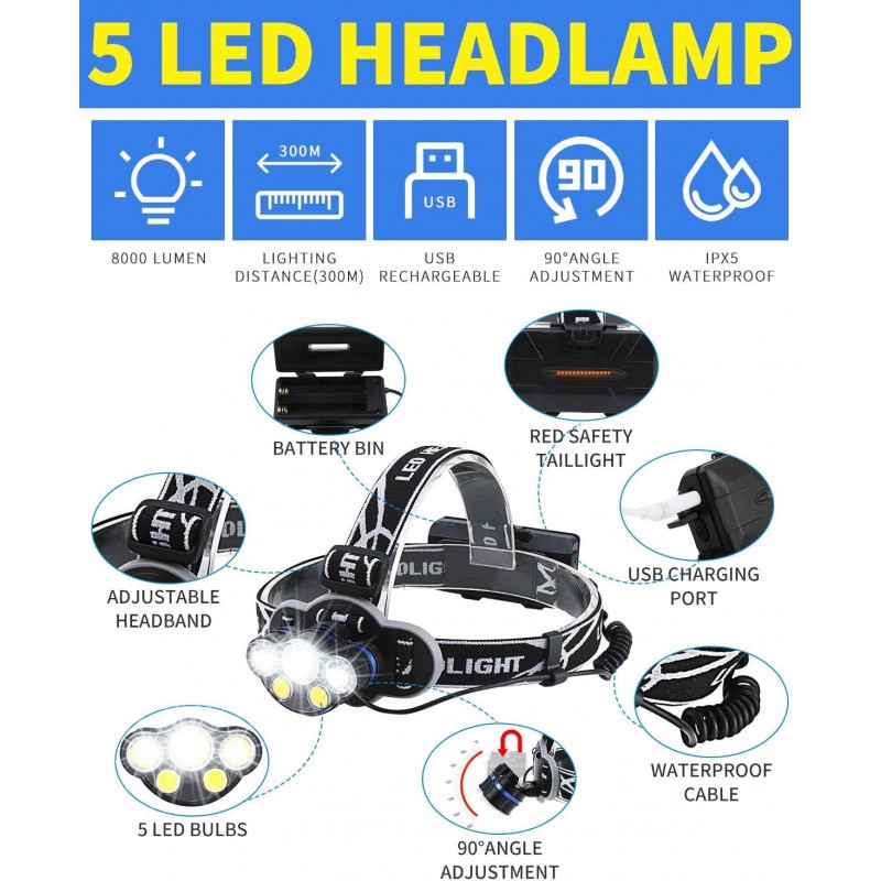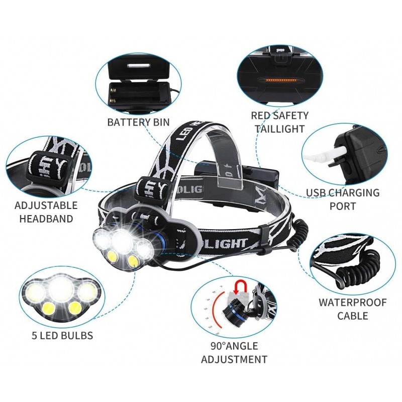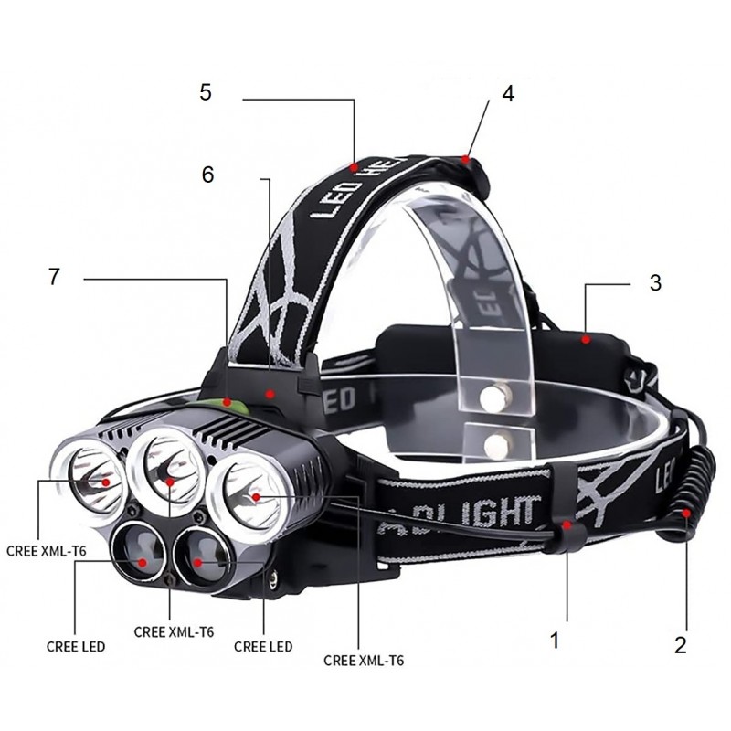 Nowoczesna i bardzo mocna latarka czołowa LED, która została wyposażona w 5 diod LED