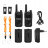 W zestawie znajduje się ładowarka z podwójnym przewodem USB umożliwiającym jednoczesne ładowanie obu krótkofalówek.