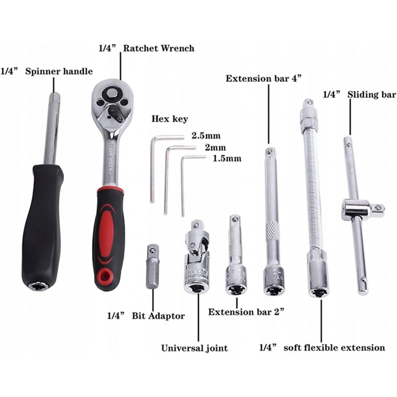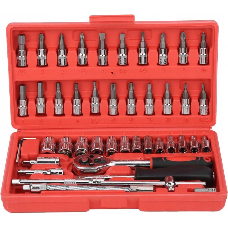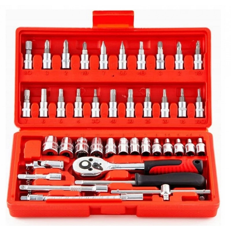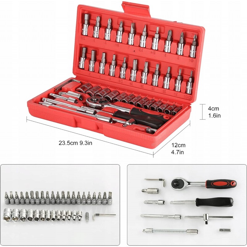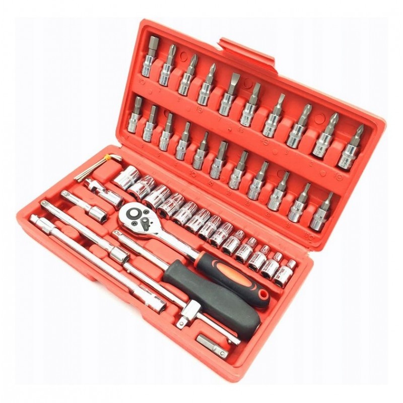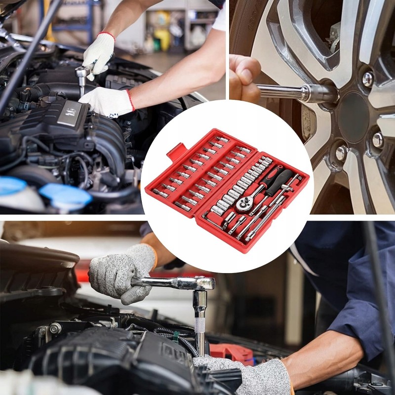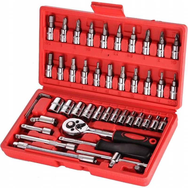 "Witamy w świecie profesjonalnych narzędzi z naszym Zestawem Kluczy Nasadowych - 46 Elementów, wykonanym z wyjątkowo wytrzymałej stali CRV. Ten wszechstronny zestaw jest niezbędny dla każdego profesjonalnego mechanika, jak i hobbysty DIY.