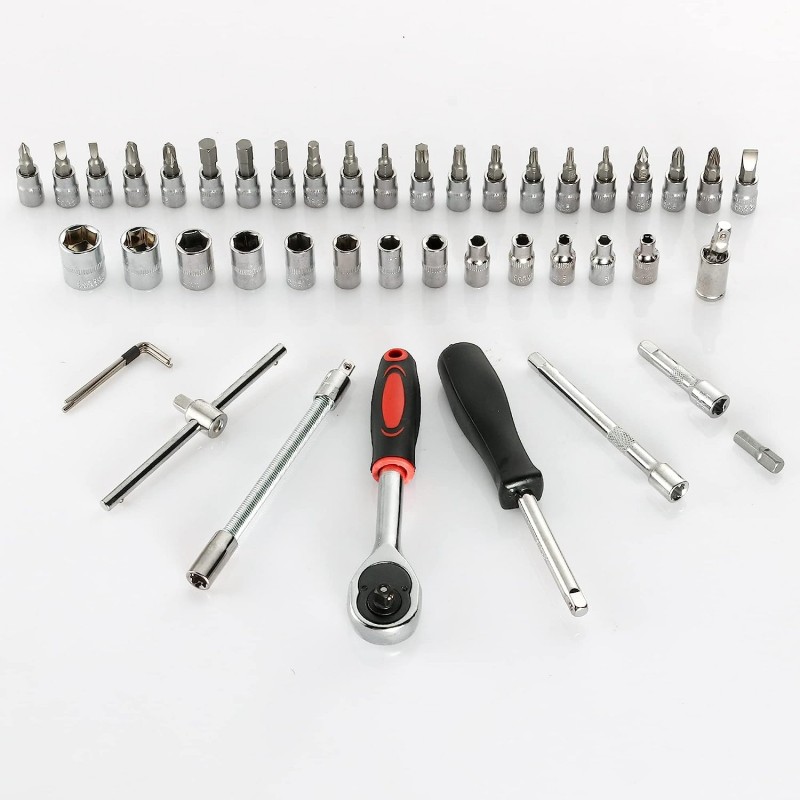 Wybierając nasz Zestaw Kluczy Nasadowych - 46 Elementów ze stali CRV, wybierasz nie tylko wysokiej jakości narzędzia, ale także niezrównaną wydajność i wszechstronność. Jest to inwestycja, która przyniesie Ci satysfakcję przez lata."