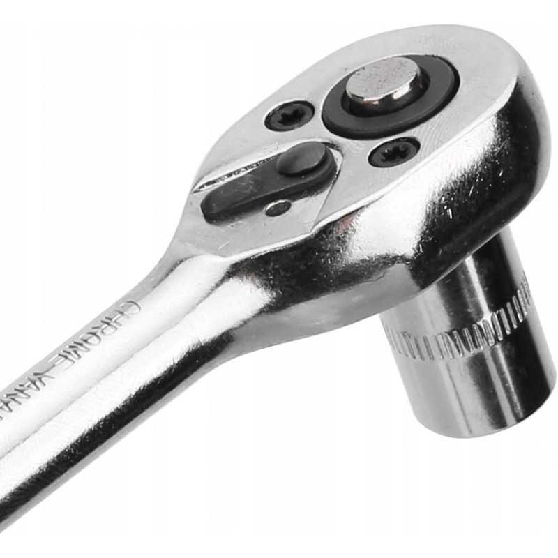 Klucze i nasadki w zestawie wykonane są z najwyższej jakości stali chromowo-wanadowej (CRV), która gwarantuje niezrównaną trwałość i wytrzymałość. Stal CRV jest znana ze swojej odporności na uszkodzenia i korozję, zapewniając długą żywotność narzędzi, nawet przy intensywnym użyciu.