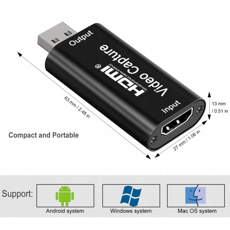 Wysokiej jakości nagrywarka - grabber obrazu z portu HDMI. Pozwala nagrywać sygnał video/audio ze źródła HDMI (odtwarzacze, konsole, kamery z złączem HDMI, obraz z innego komputera na dysk twardy lub prowadzić streaming online wykorzystując komputer PC. Przechwytuje obraz w rozdzielczości 720p/1080p. Nie wymaga zewnętrznego zasilacza, kompaktowy i przenośny. Współpracuje z systemami Windows i MacOS.
