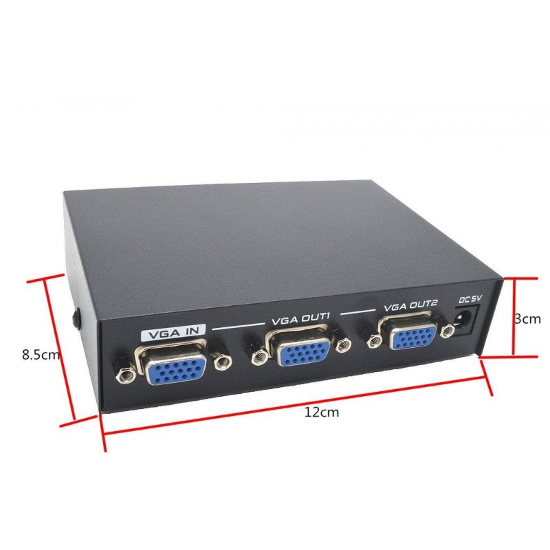 Splitter VGA 1 x 2 to wysokiej jakości produkt, pozwalający na rozdzielenie sygnału VGA do 2 zewnętrznych odbiorników i oglądanie obrazu jednocześnie na 2 monitorach.