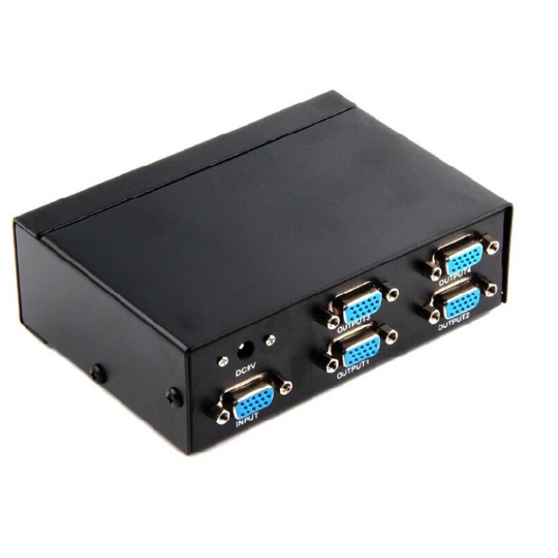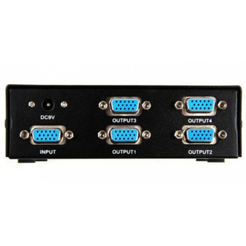 Splitter VGA 1 x 4 to wysokiej jakości produkt, pozwalający na rozdzielenie sygnału VGA do 4 zewnętrznych odbiorników i oglądanie obrazu jednocześnie na 4 monitorach.