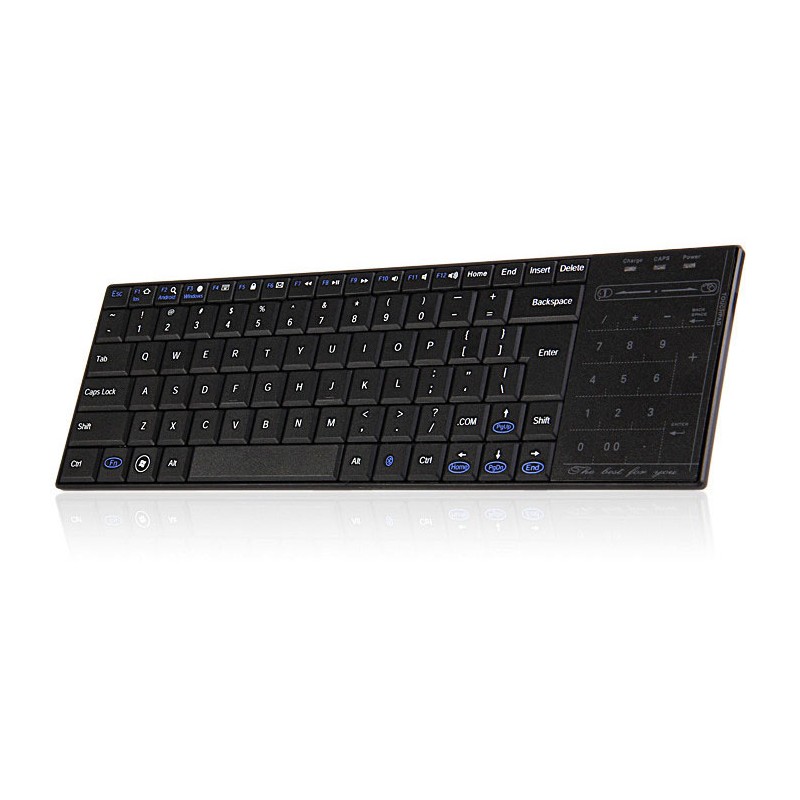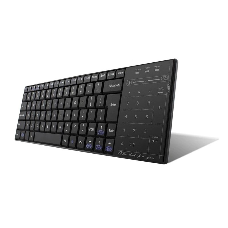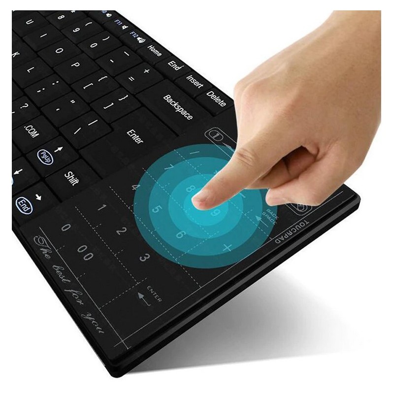 Klawiatura bluetooth o bardzo wysokiej jakości wykonania. Połączenie bezprzewodowe jest natychmiastowe. Klawiatura posiada wbudowany touchpad który ułatwia nawigowanie po urządzeniu. Ten touchpad może zamienić si w ułamku sekundy w klawiaturę cyfrową