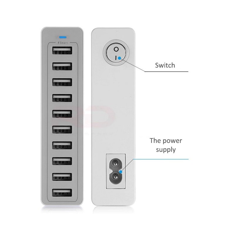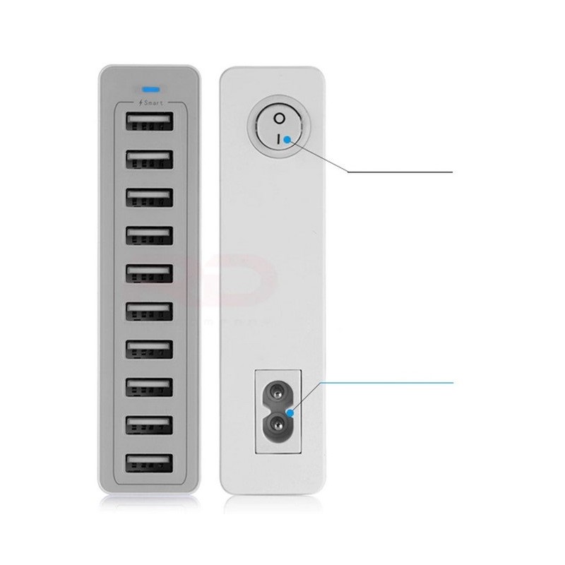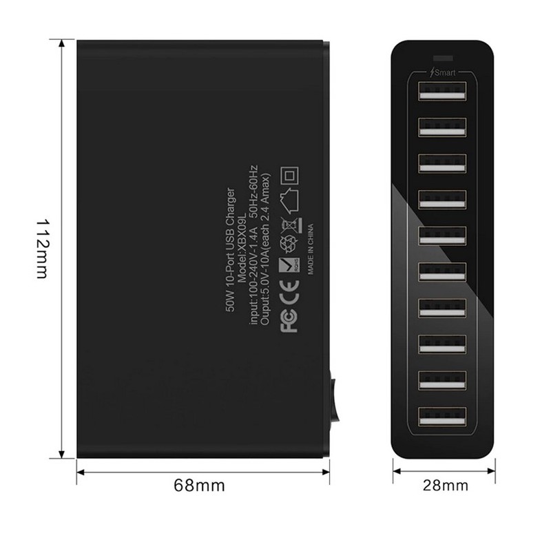 Ładowarka sieciowa FMT-03, na 10 portów USB