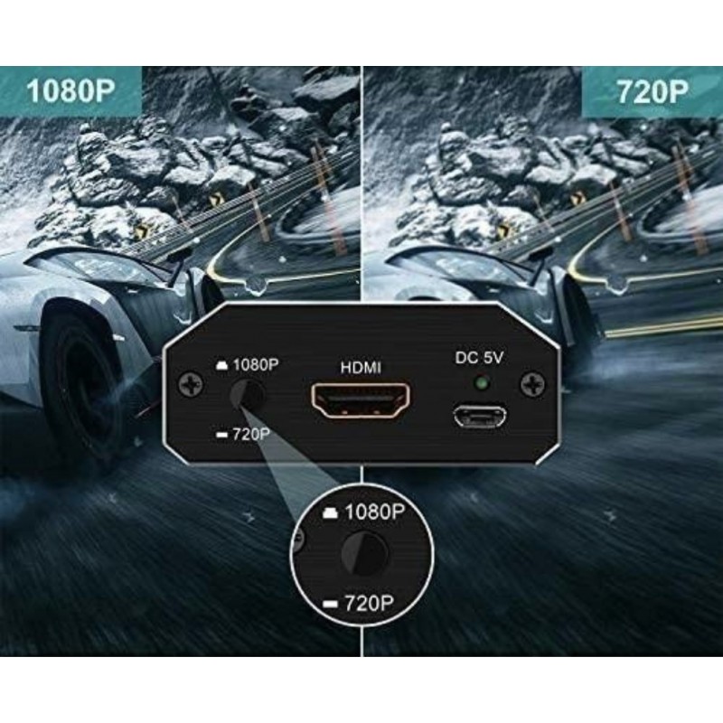 Urządzenie przesyła sygnał w wysokiej jakości i dzięki przełącznikowi na obudowie można wybrać pomiędzy dwoma rozdzielczościami - 1920x1080p a 1280x720p. Produkt posiada funkcję Plug & Play, dlatego nie jest wymagane instalowanie żadnych sterowników, produkt od razu jest gotowy do korzystania.