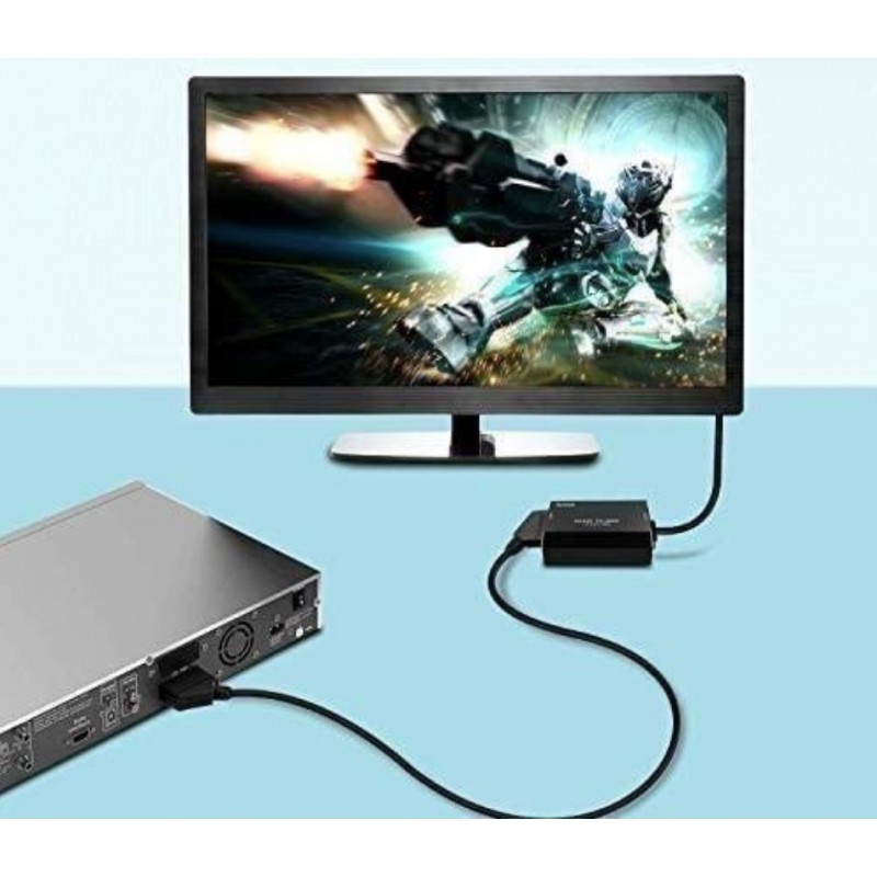 Wysokiej klasy adapter umożliwia konwertowanie obrazu oraz dźwięku analogowego na cyfrowe. Urządzenie wykorzystujemy, jeżeli posiadamy dekodery, konsole lub inne urządzenia starszej generacji ze złączem SCART, a chcielibyśmy odtworzyć wygenerowany przez nie obraz i dźwięk na telewizorze monitorze lub rzutniku z wejściem HDMI.