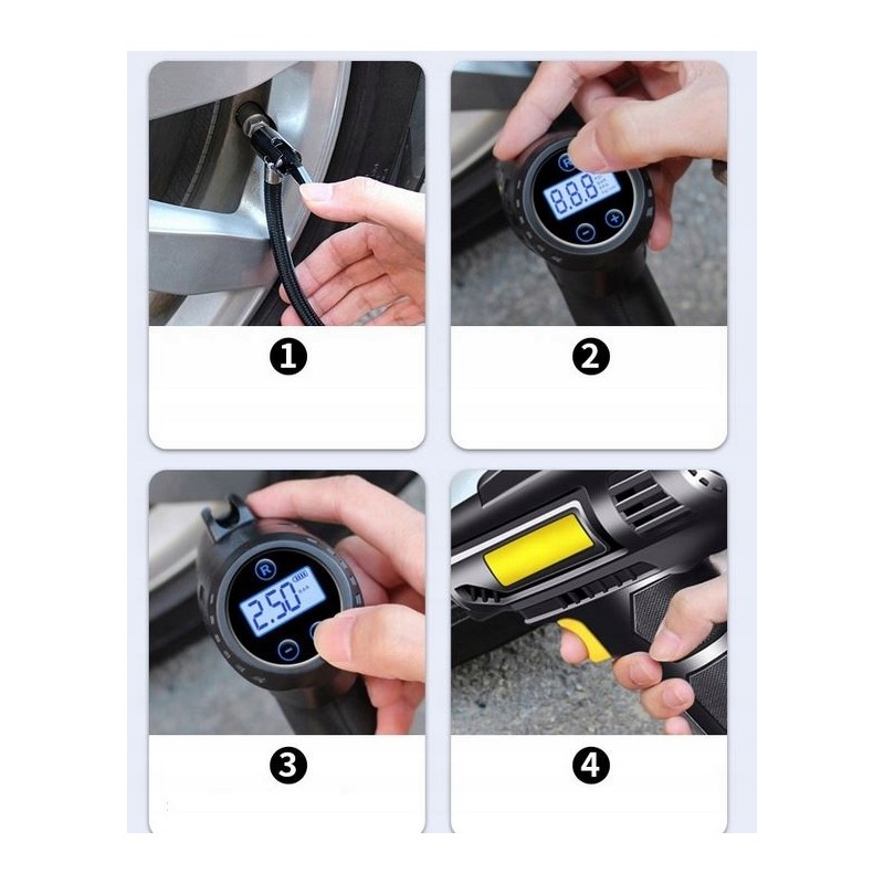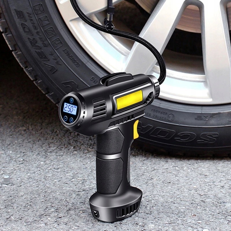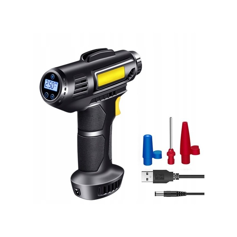Kompresor samochodowy, Sprężarka, Bez kabla zasilającego, z latarką i wyświetlaczem LCD z zestawem akcesoriów