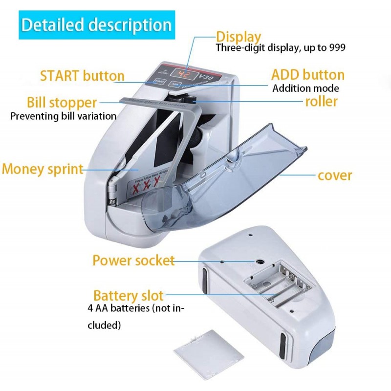 Zaletą liczarki jest bardzo cicha i szybka praca, oraz niewielki wymiar. Prędkość minimalna liczenia wynosi ponad 600 banknotów na minutę. Liczarka wyposażona jest w bardzo prosty, czytelny panel sterowania. Obsługa nie wymaga żadnej specjalistycznej wiedzy, jest w pełni intuicyjna.