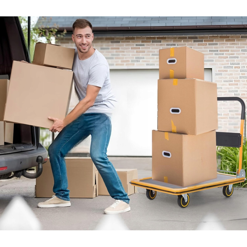 Mocny uniwersalny, wytrzymały i funkcjonalny — składany wózek platformowy to niezastąpione narzędzie do transportu ciężkich ładunków w magazynach, biurach, działach IT, sklepach czy przy przeprowadzkach. Solidna konstrukcja stalowa, antypoślizgowa powierzchnia i ciche gumowe koła gwarantują bezpieczne i komfortowe użytkowanie każdego dnia.