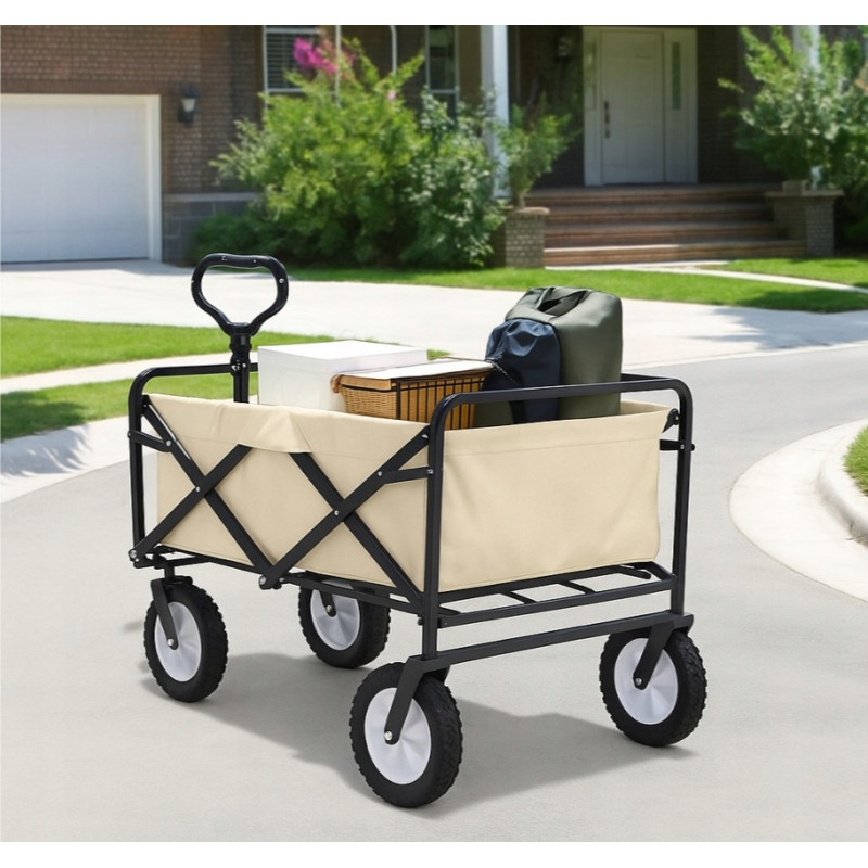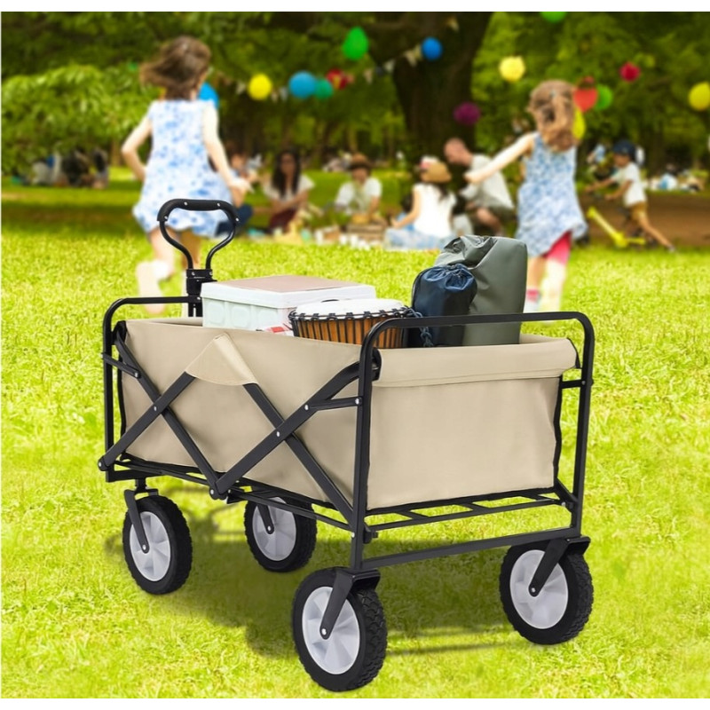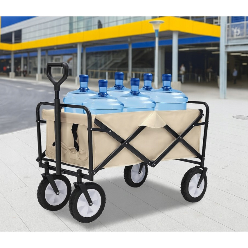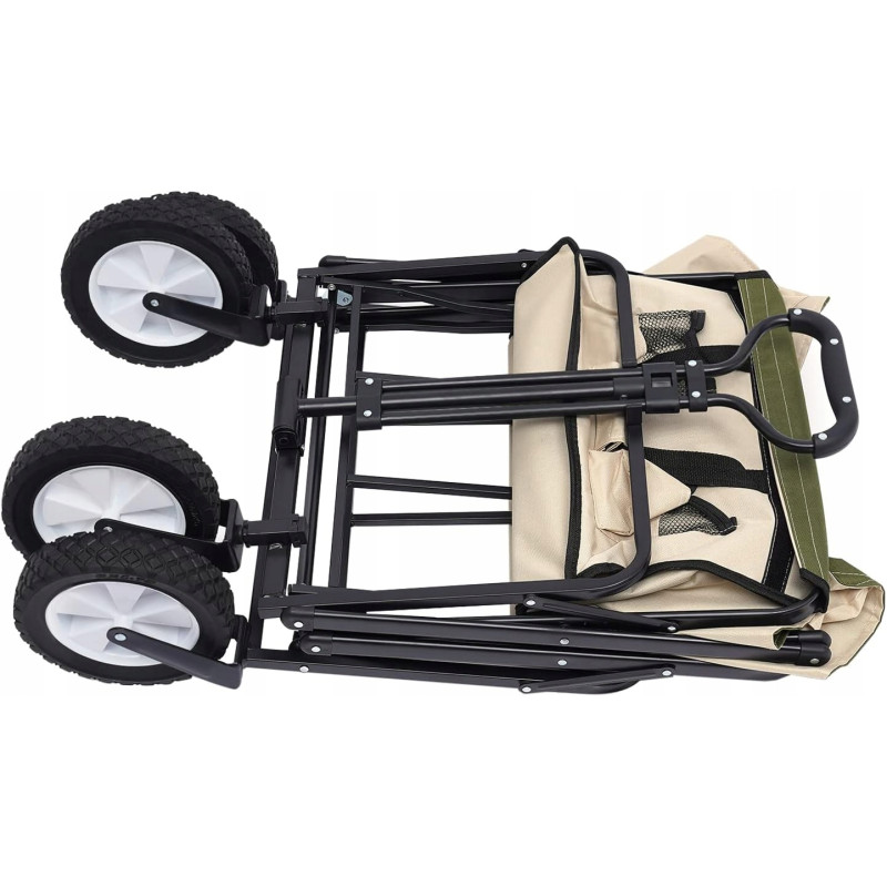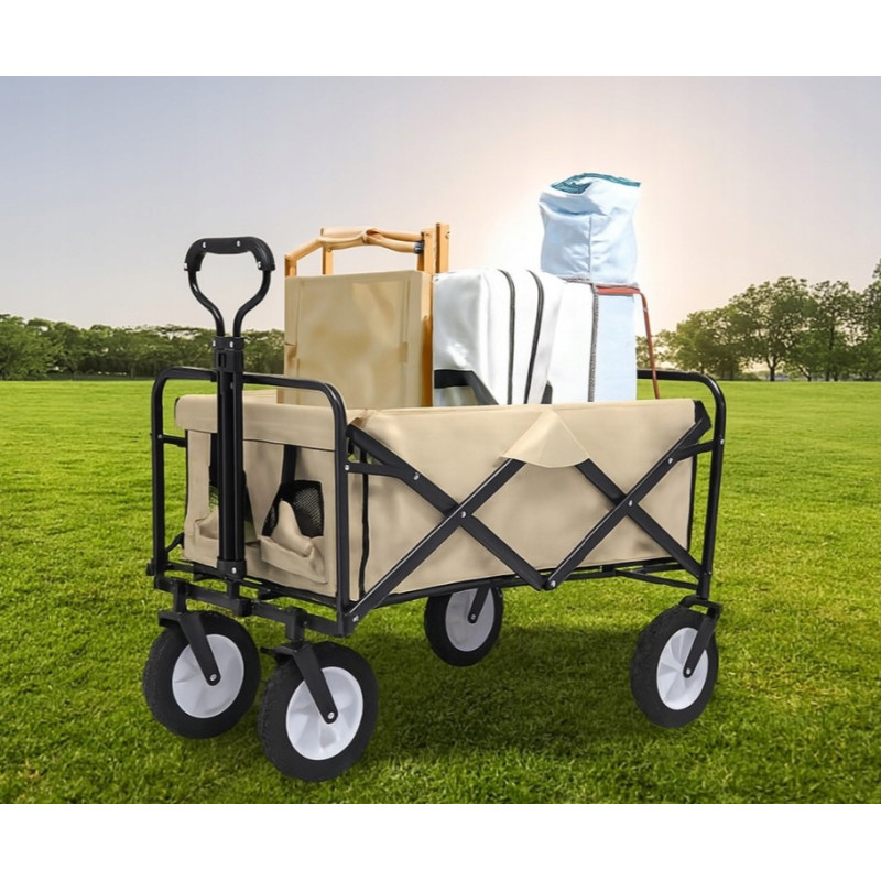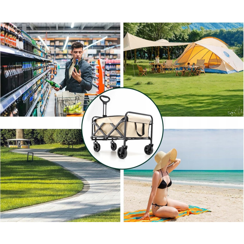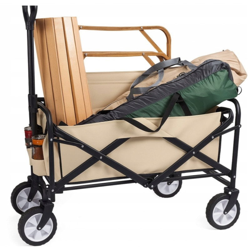 Składany wózek transportowy z łatwością pomieści składane krzesła, śpiwory, namioty, napoje i inne niezbędne przedmioty. Idealny na kemping, plażę, piknik czy zakupy — wszystko, czego potrzebujesz, w jednym miejscu i bez wysiłku.
