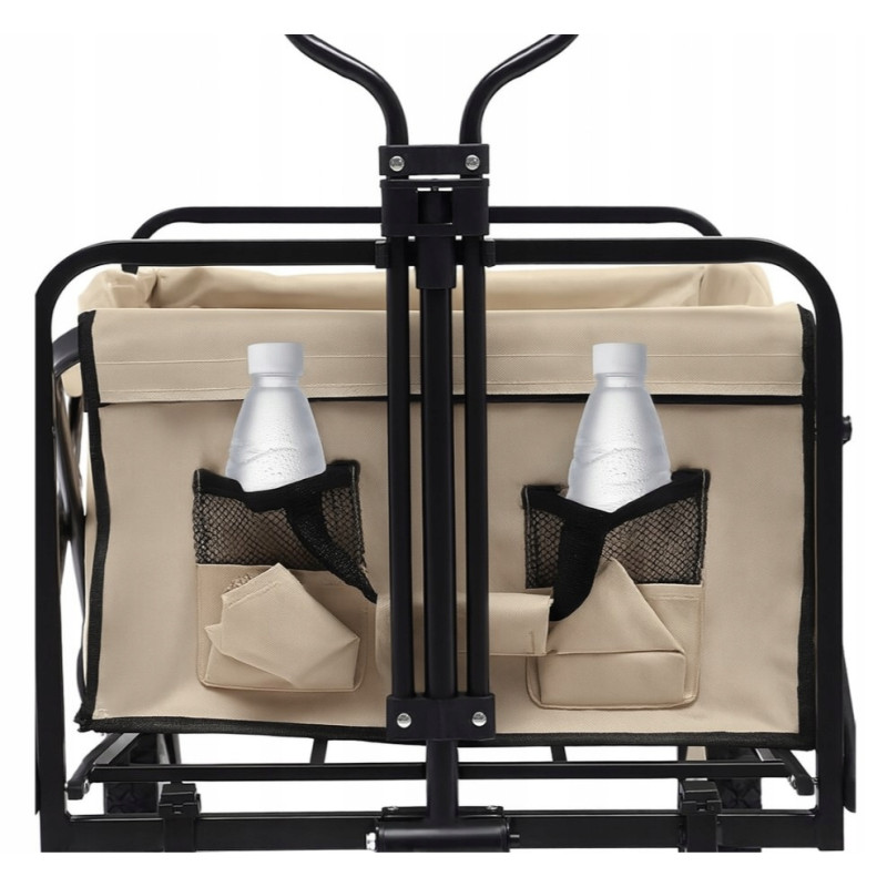 Jedna część wózka została wyposażona w siatkowe kieszenie idealne na butelki z wodą, napoje, przekąski, ręczniki czy inne drobiazgi — wszystko w zasięgu ręki podczas wycieczki, pikniku lub dnia na plaży.