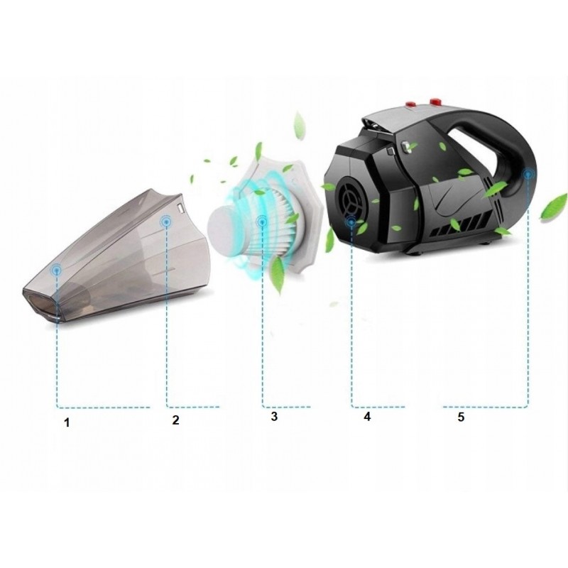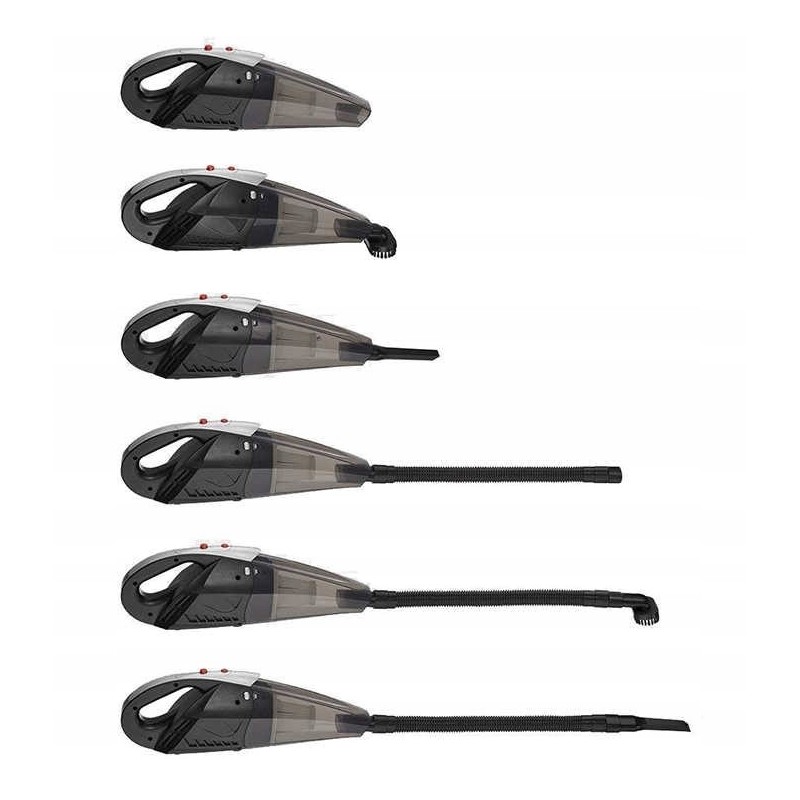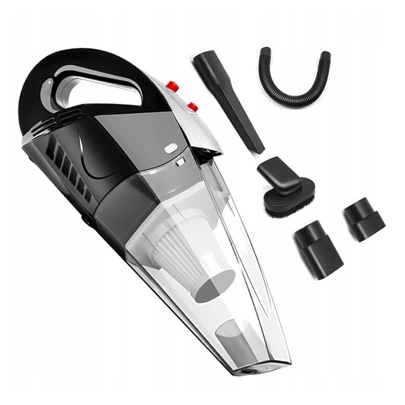 Odkurzacz samochodowy z bogatym zestawem akcesoriów. Doskonały sposób na utrzymanie porządku nie tylko w aucie, ale wszędzie gdzie tylko pojawi się nieprzyjemny bałagan. Lekki, łatwy w obsłudze i cichy. Posiada diodę LED oświetlającą miejsce odkurzania.