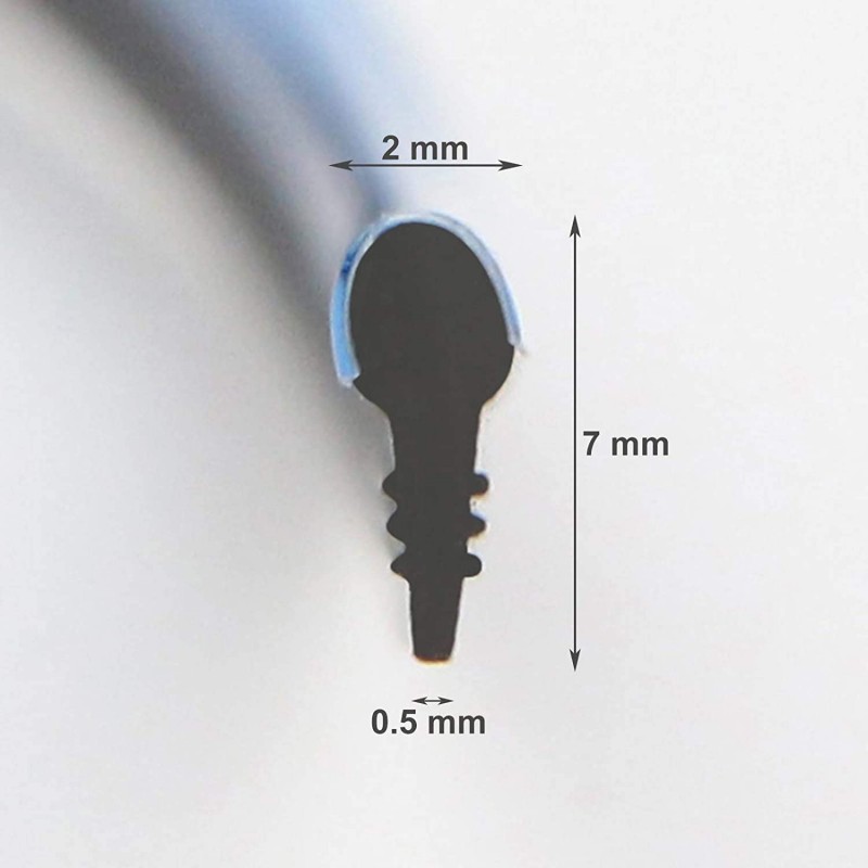 - Nie ma potrzeby klejenia, przekrój w kształcie litery T, po prostu należy wcisnąć taśmę w szczelinę.