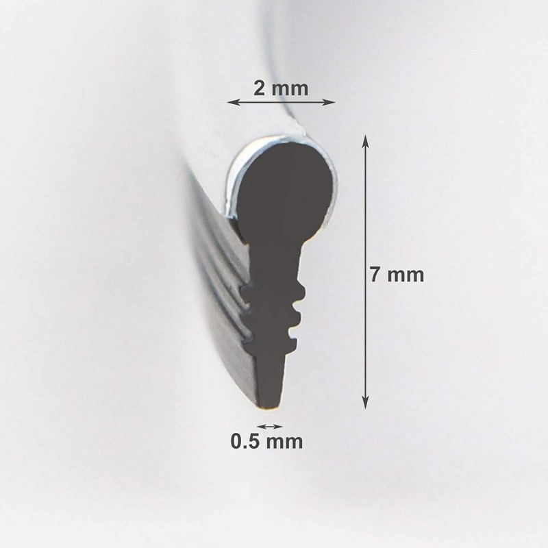 - Nie ma potrzeby klejenia, przekrój w kształcie litery T, po prostu należy wcisnąć taśmę w szczelinę.