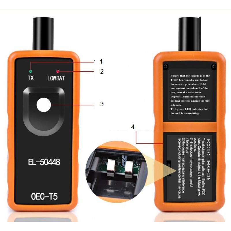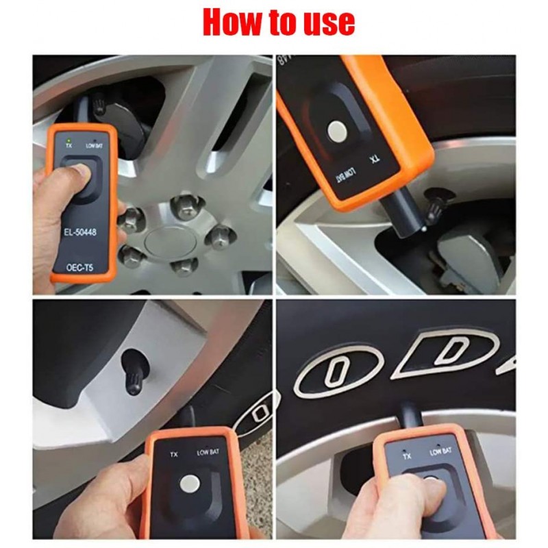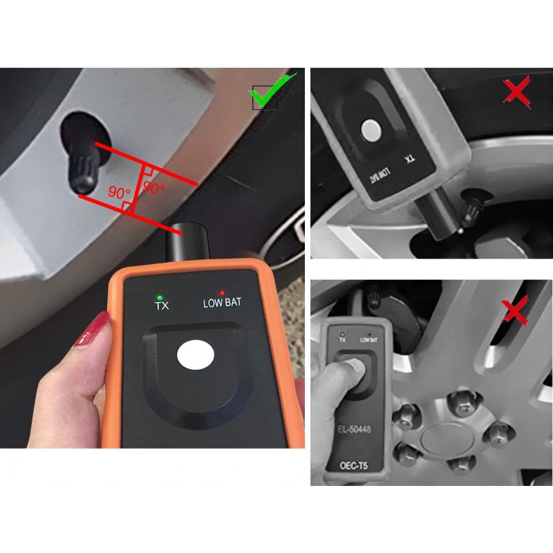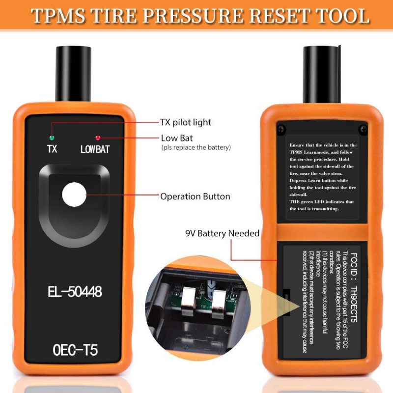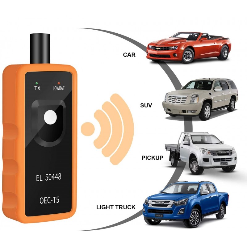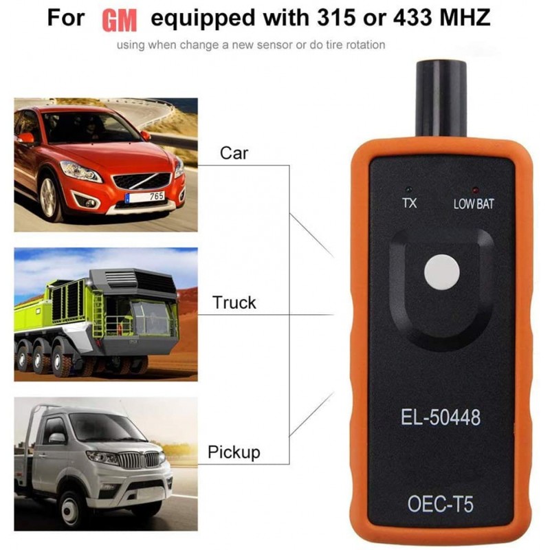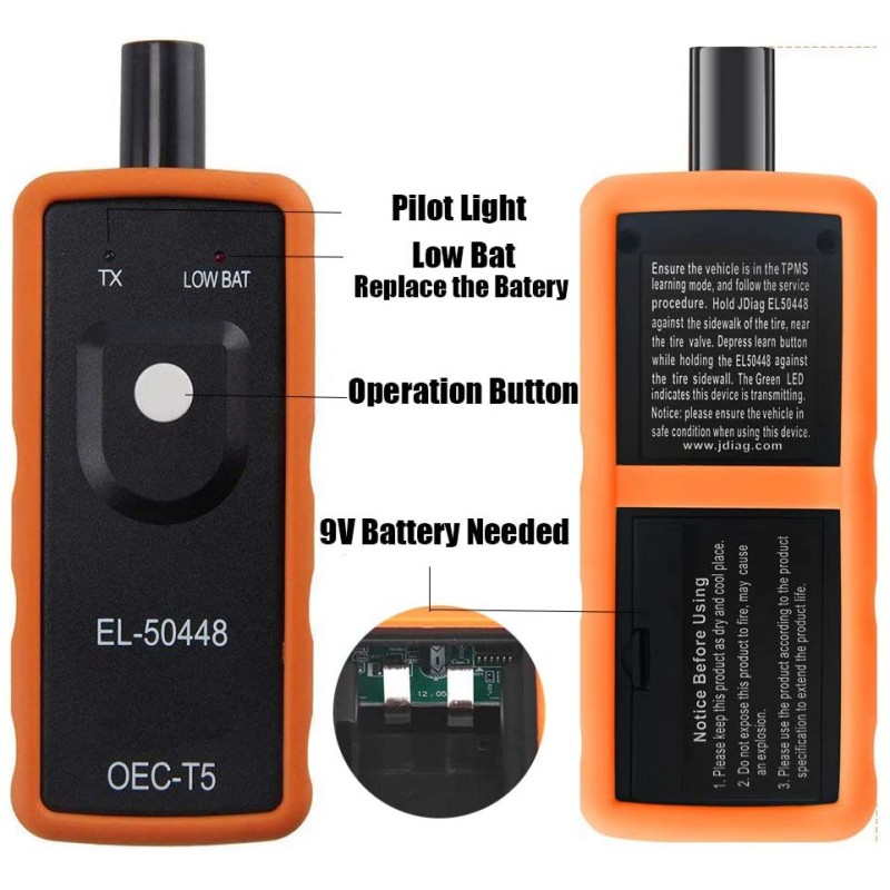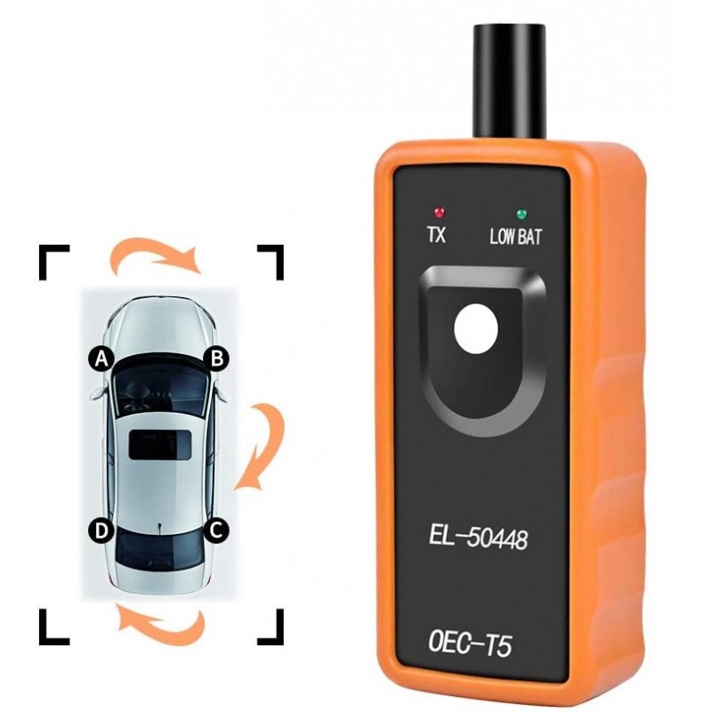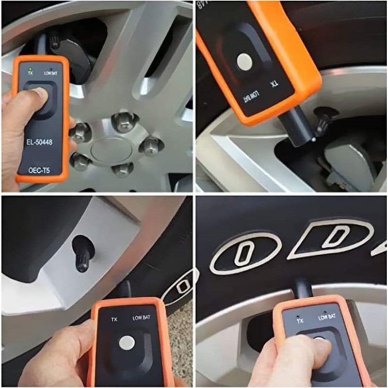 Programator czujników TPMS EL-50448 to urządzenie, które służy do kalibracji czujników ciśnienia w oponach. Aktywator współpracuje tylko z oryginalnymi czujnikami TPMS, gdzie częstotliwość nadawania fal to 433 MHz dla samochodów europejskich lub 315 MHz dla amerykańskich. Przydatny przy wymianie opon letnich na zimowe lub odwrotnie, przy awarii lub uszkodzeniu czujnika ciśnienia w oponach.
