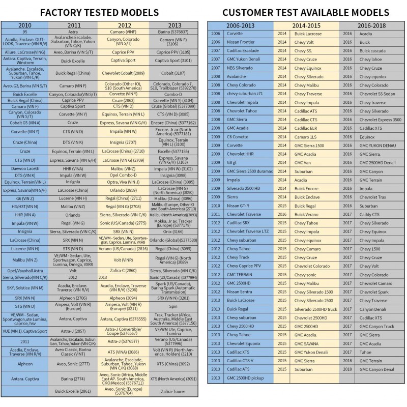 Urządzenie współpracuje z prawie wszystkimi samochodami z grupy GM/Opel/Chevrolet