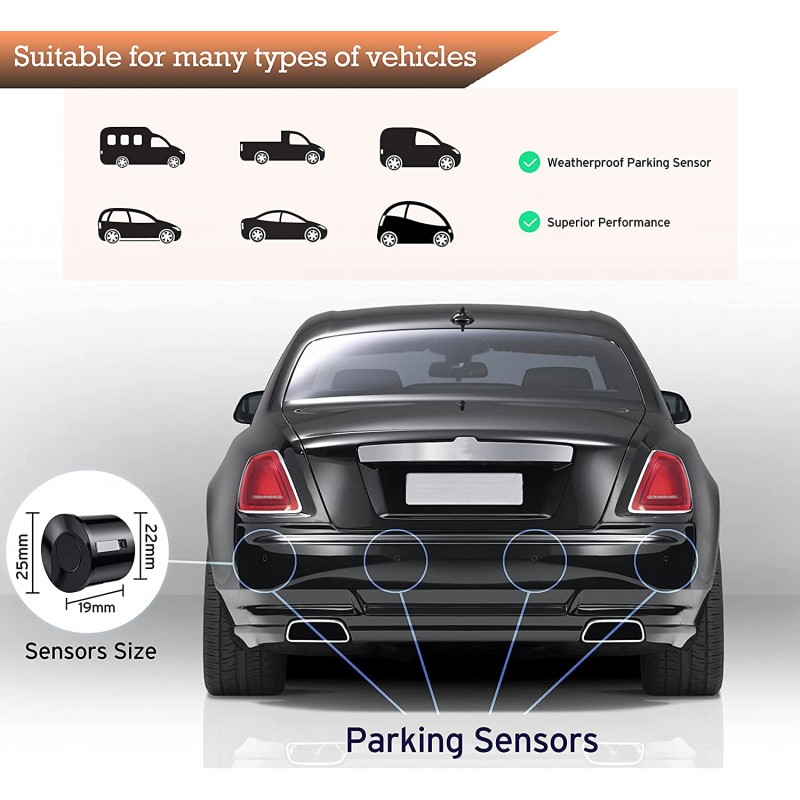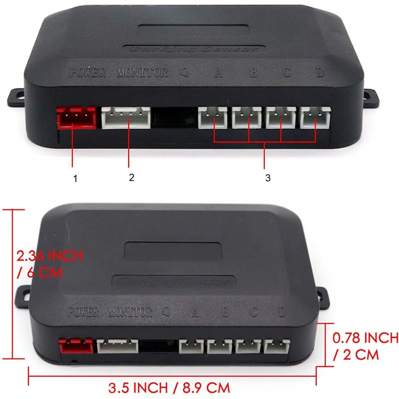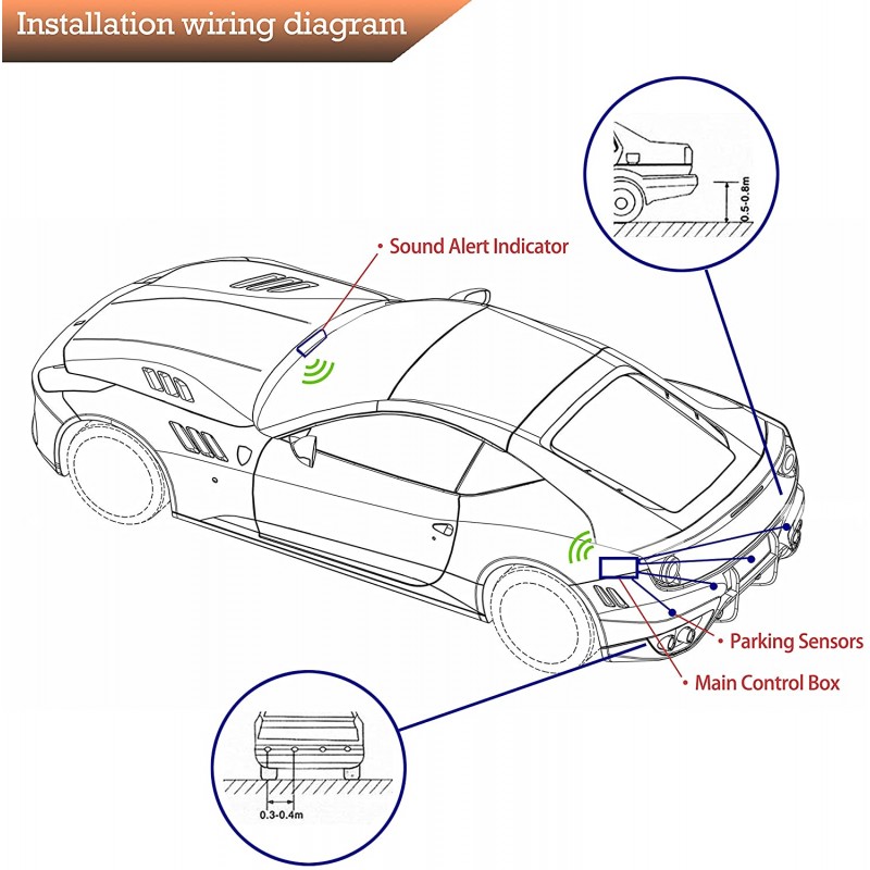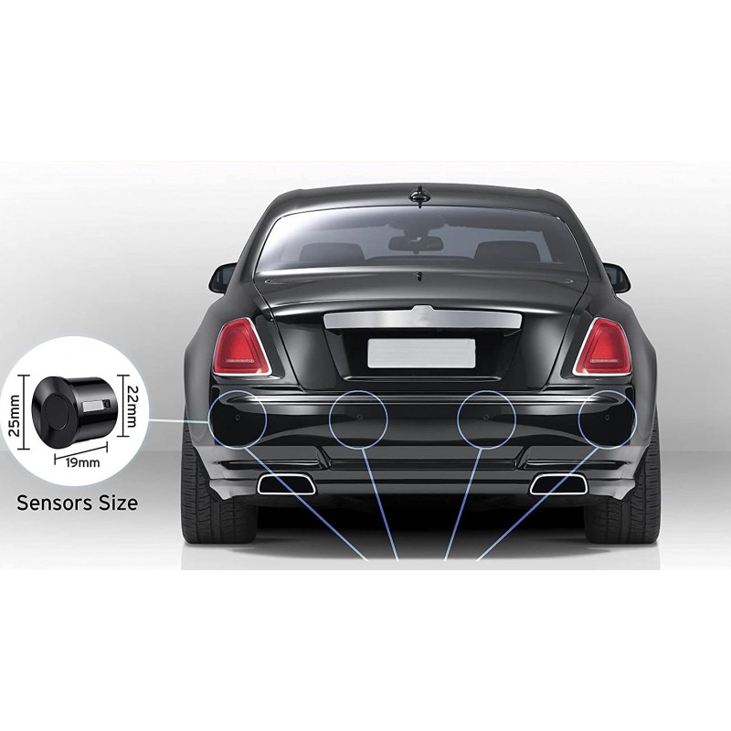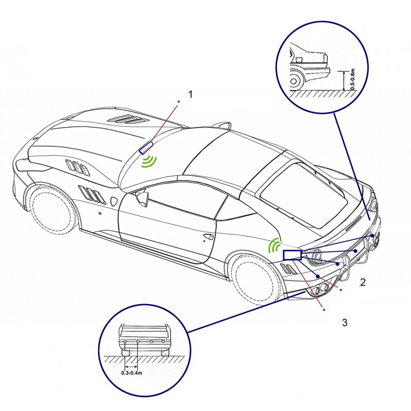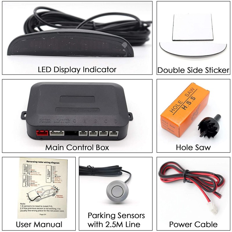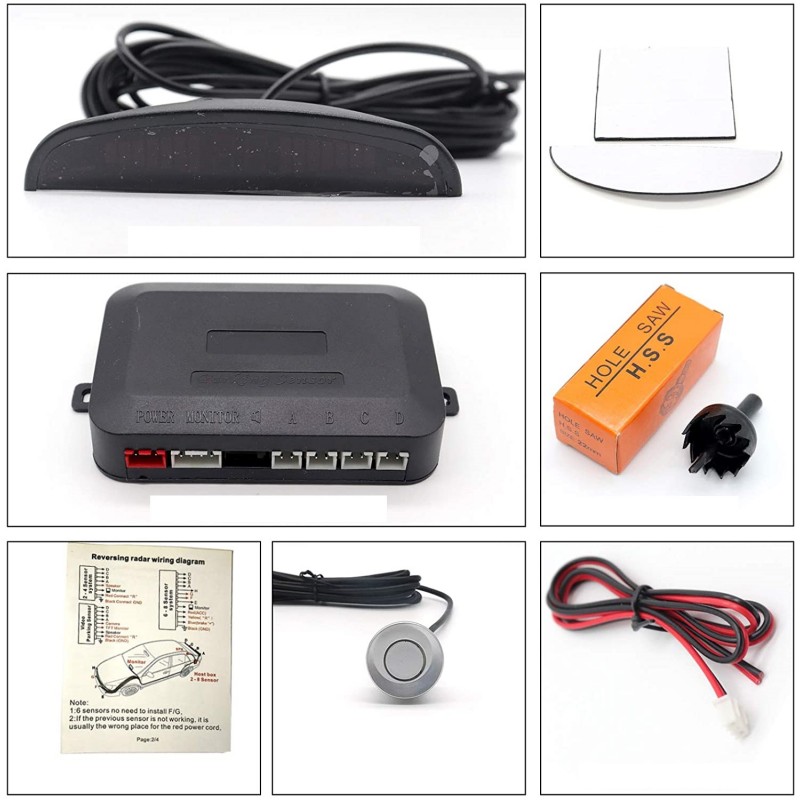 Uniwersalny system czujników parkowania, wyposażony w 4 sensory oraz sygnalizator graficznym i dźwiękowy. Zestaw zapewnia bezpieczniejsze i łatwiejsze manewrowanie pojazdem. System nadzoruje obszar za samochodem i informuje kierowcę o zbliżaniu się do przeszkody. Urządzenie uruchamia się automatycznie po włączeniu światła cofania. Głośnik emituje sygnał dźwiękowy, gdy odległość pojazdu od przeszkody wynosi ok. 0,3 - 2,5 metrów. Dźwięk nasila się, gdy pojazd zbliża się do przeszkody. Zestaw wykrywa inne samochody, słupki, dzieci, zwierzęta i małe przeszkody.