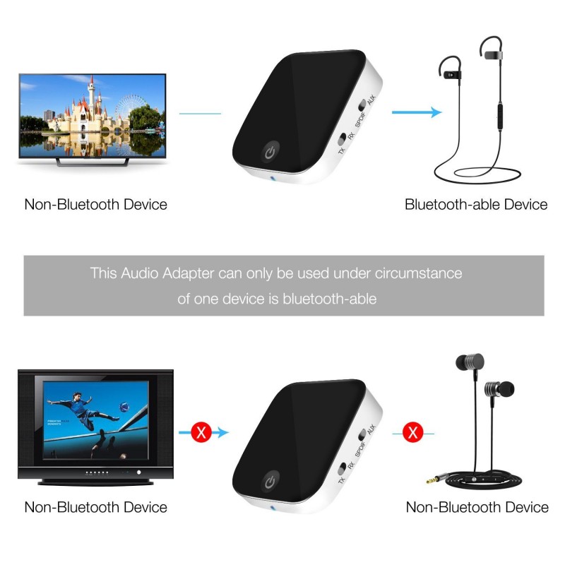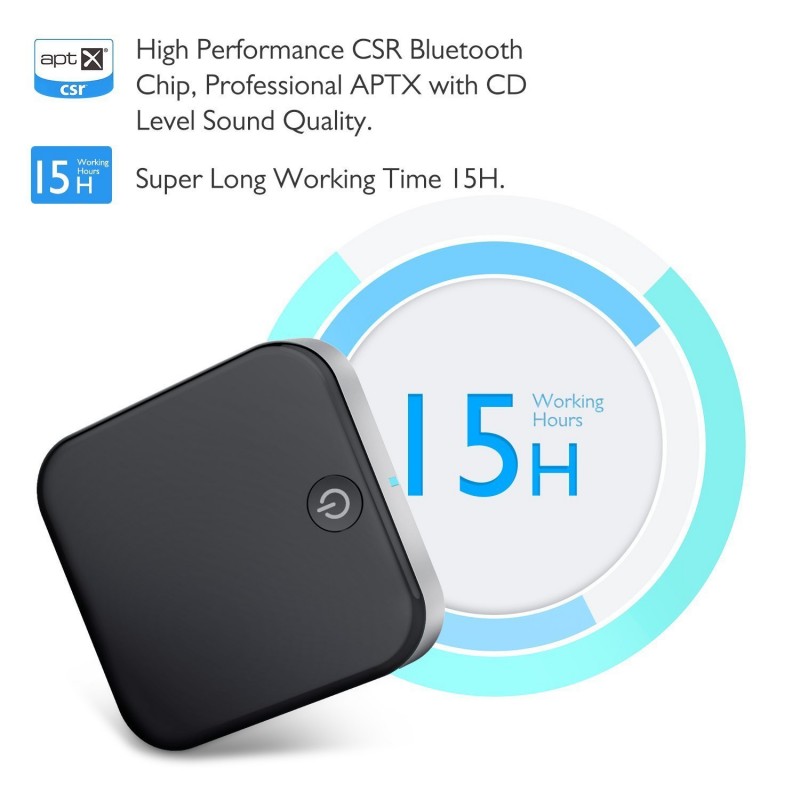 NADAJNIK - umożliwia bezprzewodowy przesył dźwięku (bluetooth) za wszystkich urządzeń z wyjściem mini jack lub Toslink / SPDiF (laptop, MP3, wieża, amplituner, odbiornik TV i inne ) do wszystkich słuchawek i głośników z funkcją bluetooth.