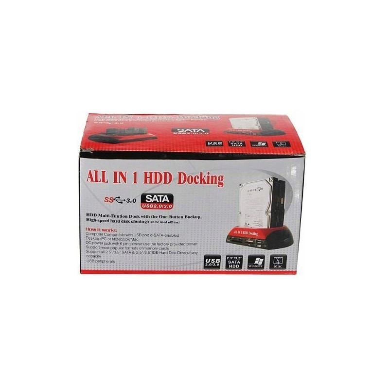 Stacja dokująca ALL IN ONE do dysków i urządzeń magazynujących z funkcją OTC (One Touch Clone) i portem USB 3.0 o przepustowości 5 Gb/s.