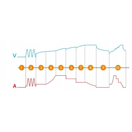 To inteligentny prostownik mikroprocesorowy nowej generacji, który automatycznie dopasowuje parametry ładowania do rodzaju akumulatora i warunków pracy. Dzięki 10-stopniowemu procesowi ładowania, urządzenie zapewnia maksymalną żywotność akumulatora oraz bezpieczeństwo użytkowania.
