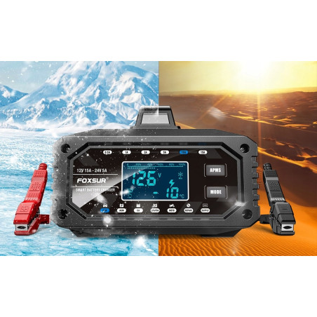 Prostownik Samochodowy FOXSUR do Akumulatorów 12V 24V 15A