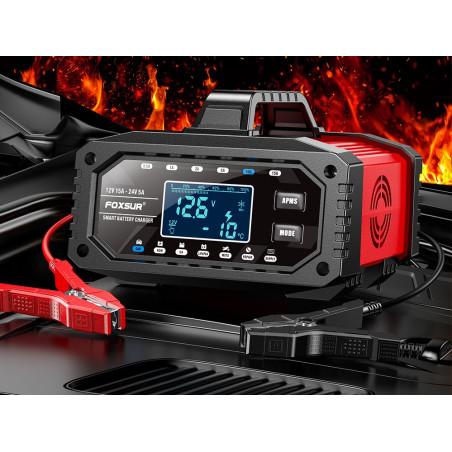 Foxsur 12V/24V 15A to niezawodny i wszechstronny prostownik, który sprawdzi się w każdym garażu. Idealny do samochodów osobowych, motocykli, kamperów, a także akumulatorów AGM i LiFePO4.