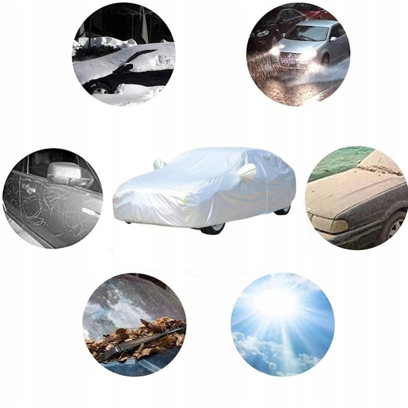 Wysokiej jakości pokrowiec z tkaniny PEVA zapewnia ochronę przed deszczem, śniegiem, promieniowaniem UV oraz uszkodzeniami karoserii przez cały rok, niezależnie od warunków atmosferycznych.