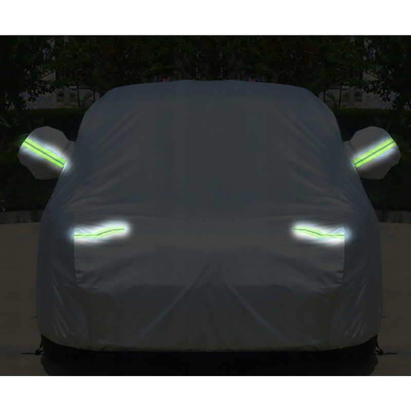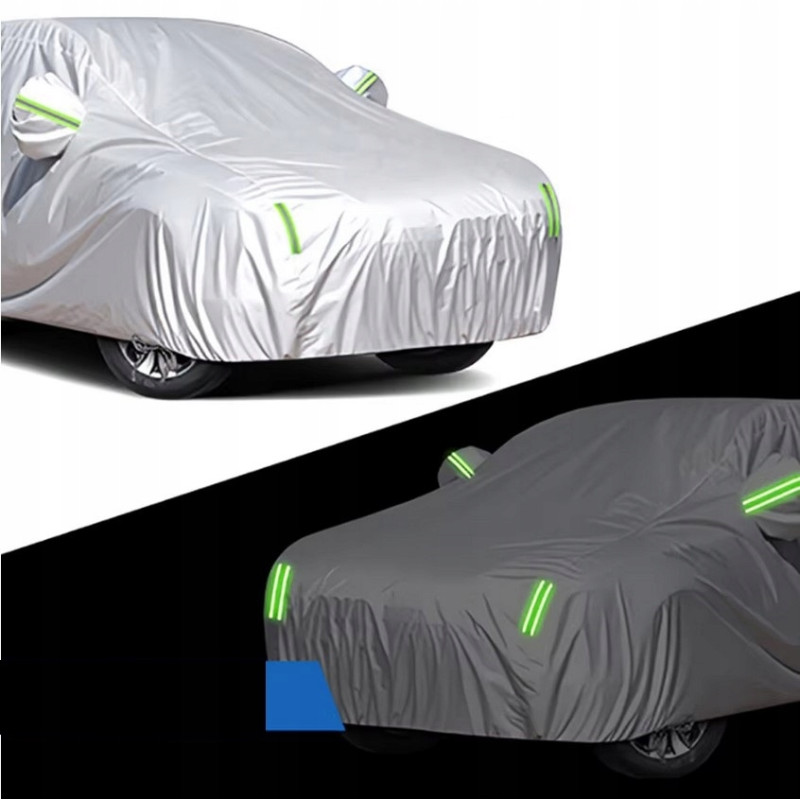 Wysokiej jakości pokrowiec z tkaniny PEVA zapewnia ochronę przed deszczem, śniegiem, promieniowaniem UV oraz uszkodzeniami karoserii przez cały rok, niezależnie od warunków atmosferycznych.