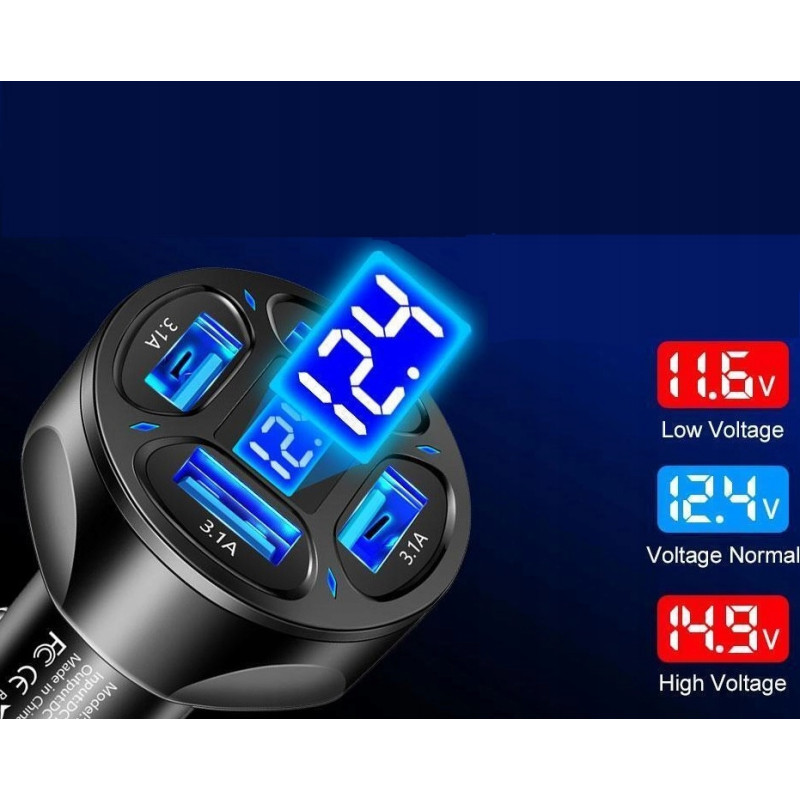 Dzięki tej ładowarce, Twoje urządzenia będą zawsze naładowane, a Ty zyskasz spokój ducha, wiedząc, jakie jest aktualne napięcie akumulatora Twojego samochodu. 4 porty USB z prądem 3,1A spokojnie naładują wszystkie urządzenia jakie posiadasz