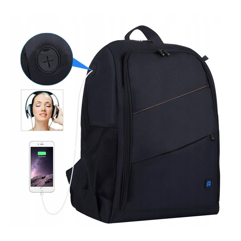 Praktyczny otwór na słuchawki: Dzięki wbudowanemu otworowi na słuchawki możesz łatwo słuchać muzyki z telefonu znajdującego się w plecaku lub ładować go przy pomocy zewnętrznego zasilania.