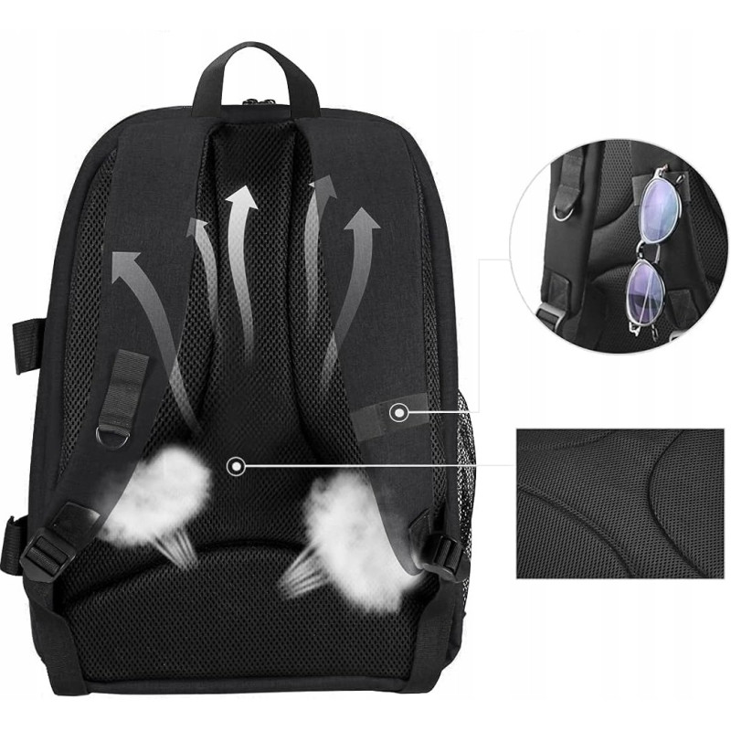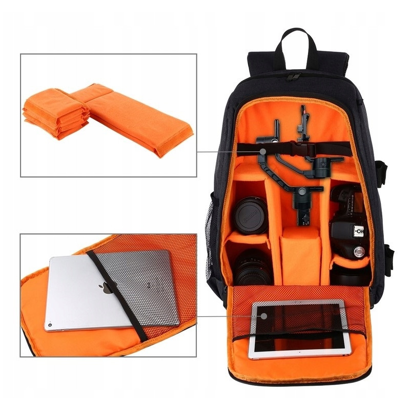 Wielofunkcyjne kieszenie: Główna komora jest wyposażona w różnorodne kieszenie: na aparat, notebooka, tablet, telefon, magazyn czy ubrania. Dodatkowe miejsce na okulary, małe przedmioty, butelkę z wodą i wiele innych.