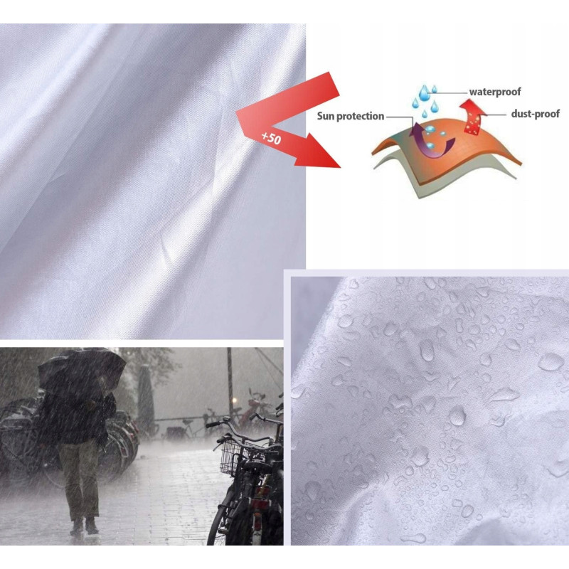 - Ochrona na najwyższym poziomie: Specjalny materiał chroni rowery przed kurzem, brudem, słońcem, deszczem, śniegiem, promieniowaniem UV i zanieczyszczeniami.