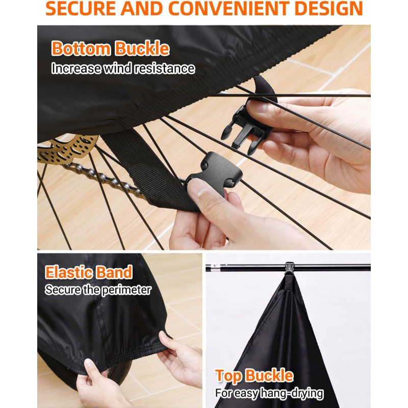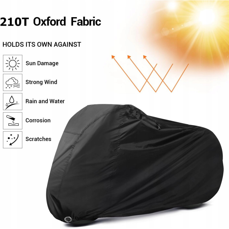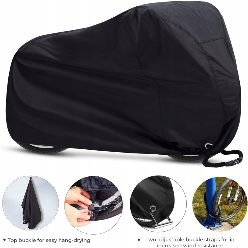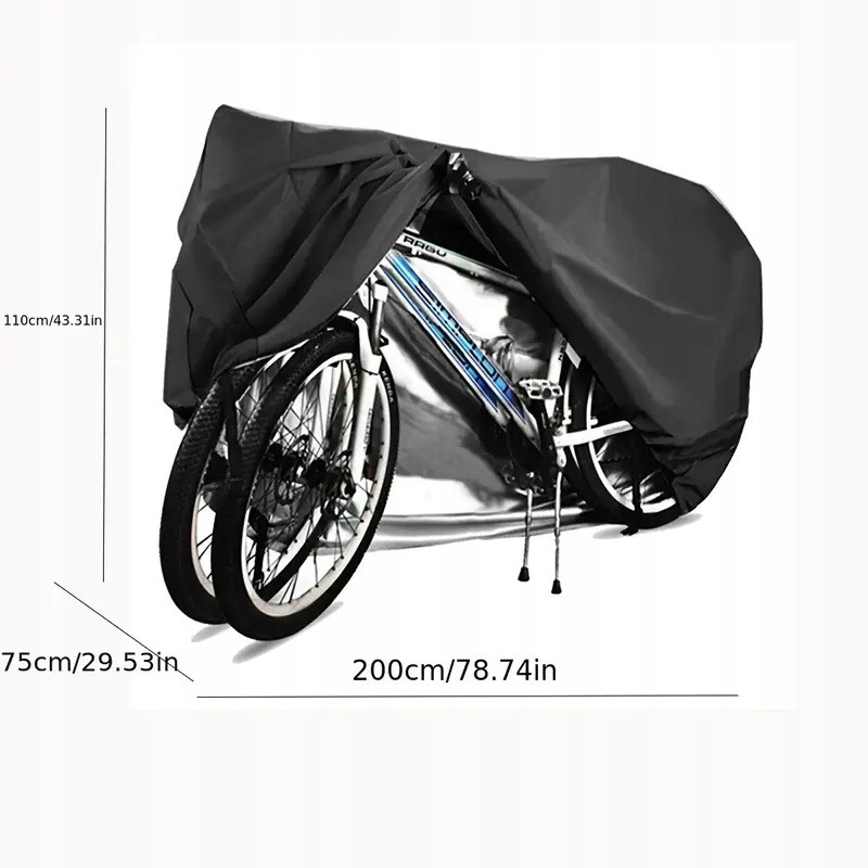 - Uniwersalne Dopasowanie: Pokrowiec o wymiarach 200 x 110 x 75 cm pasuje do większości rowerów o rozmiarze koła do 29 cali, w tym rowerów górskich, miejskich, szosowych i komfortowych.