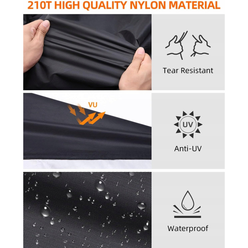 - Regulowany Pasek, Gumowe Ściągacze: Pasek z klamrą pozwala bezpiecznie umocować pokrowiec, nawet podczas silnych wiatrów.