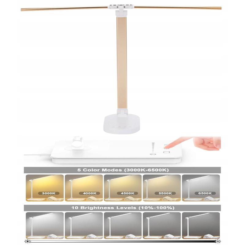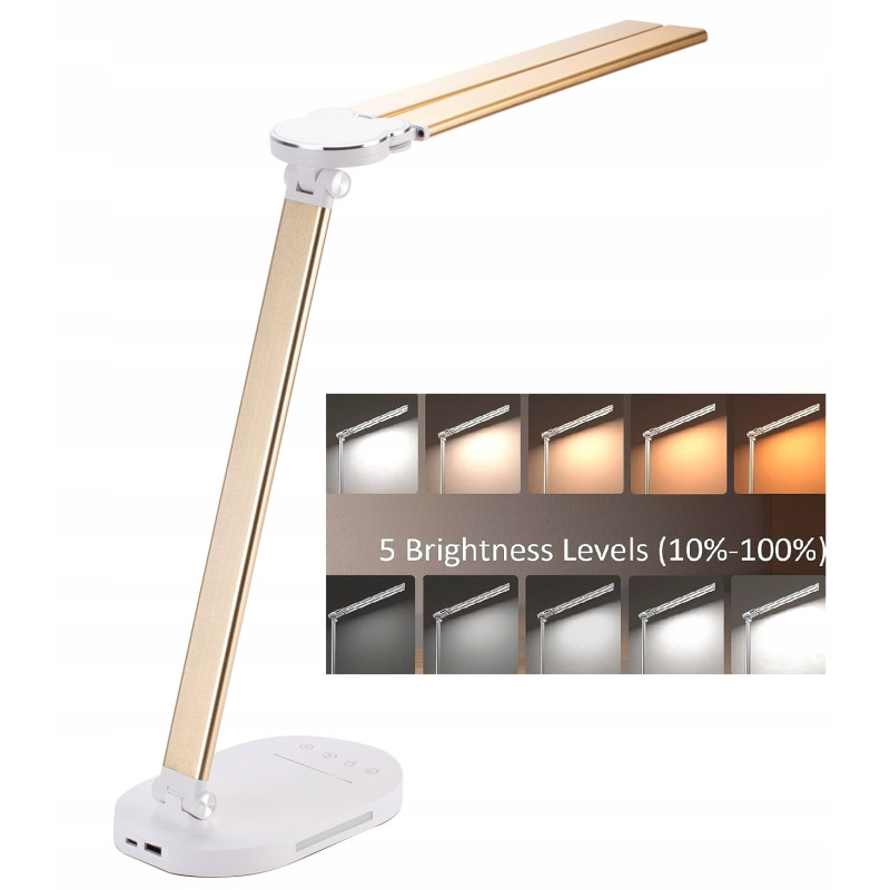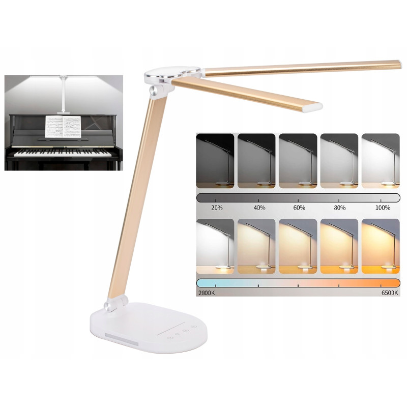 Lampka Led na Biurko biurkowa podwójna MOCNA ZŁOTA sterowana dotykowe
