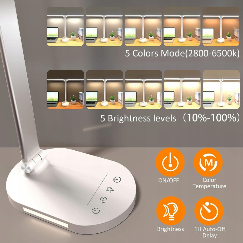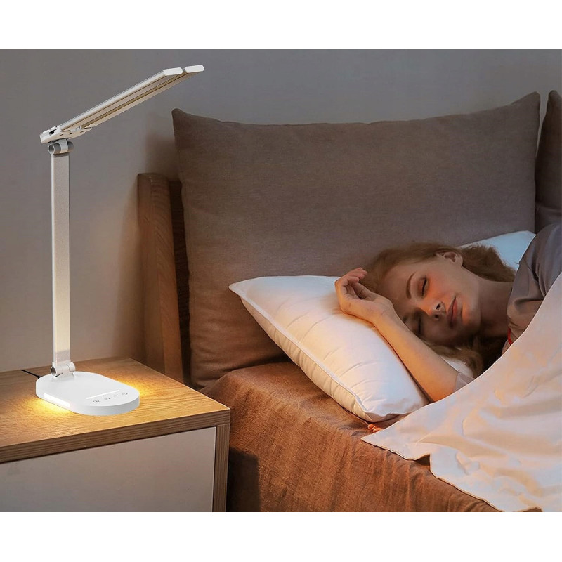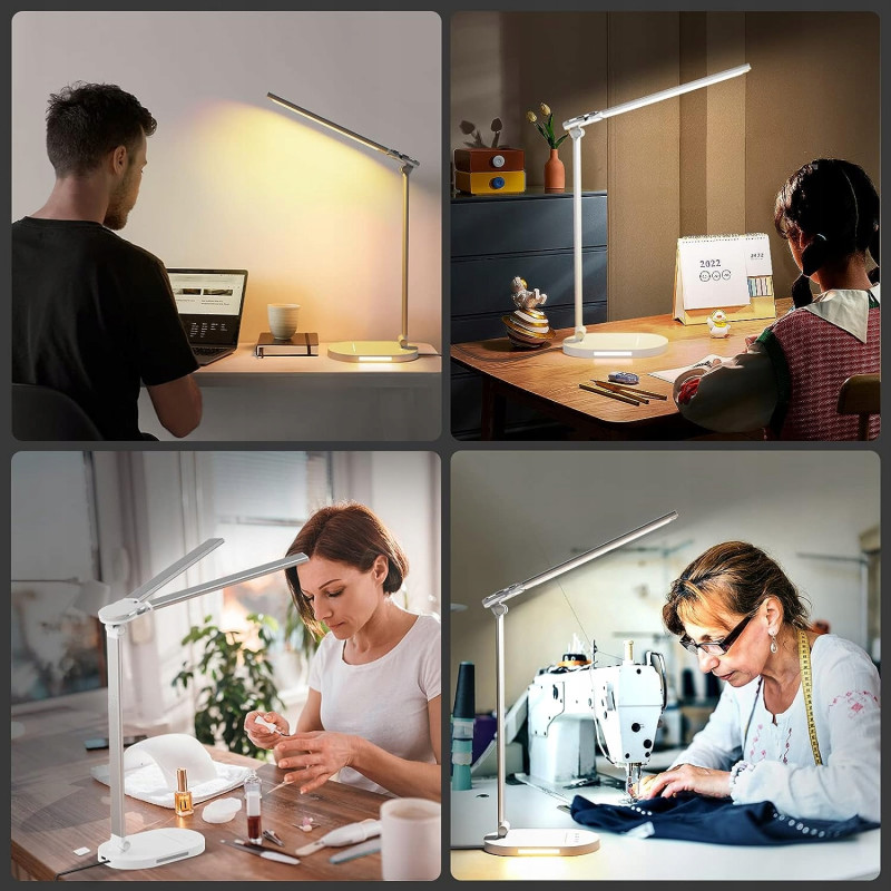 Lampa biurkowa emituje miękką, pozbawioną migotania poświatę, z regulowanymi ustawieniami światła, które pomagają tej lampie lepiej dopasować się do ostrości wzroku, idealnej do pracy, nauki, czytania lub relaksu.