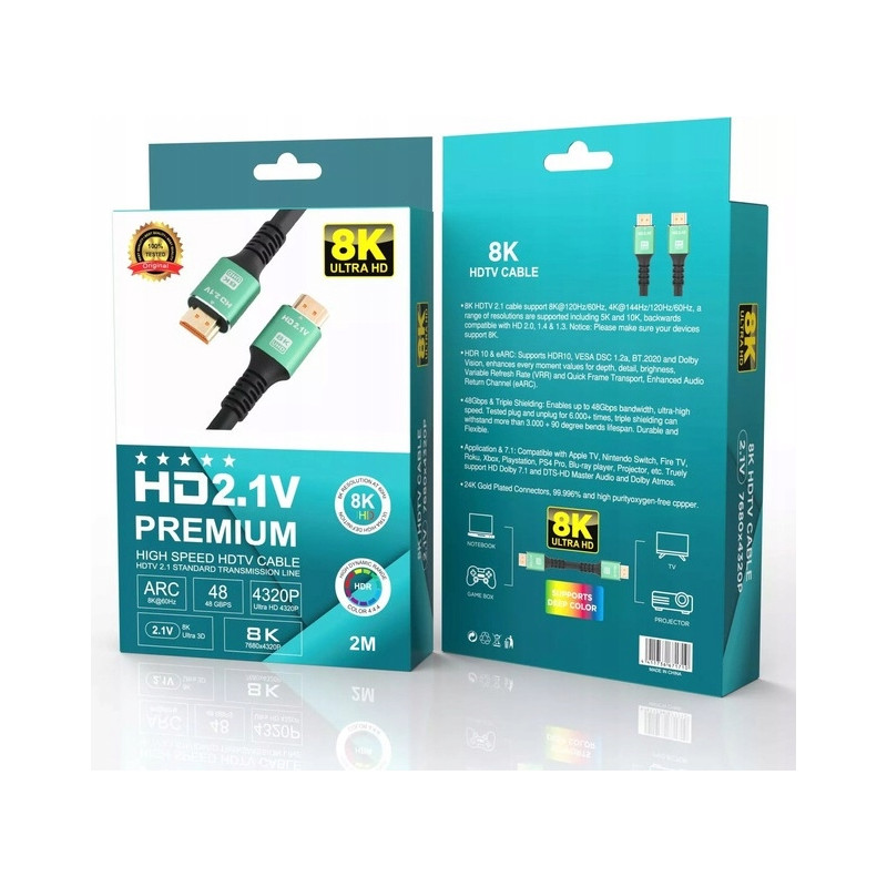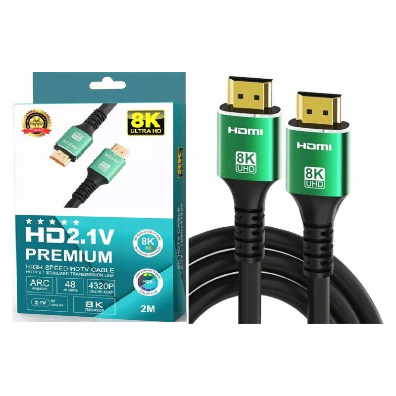 Kabel HDMI - HDMI 2.1 V PREMIUM 8K 4K 144Hz Mocny Monitor Projektor 2m