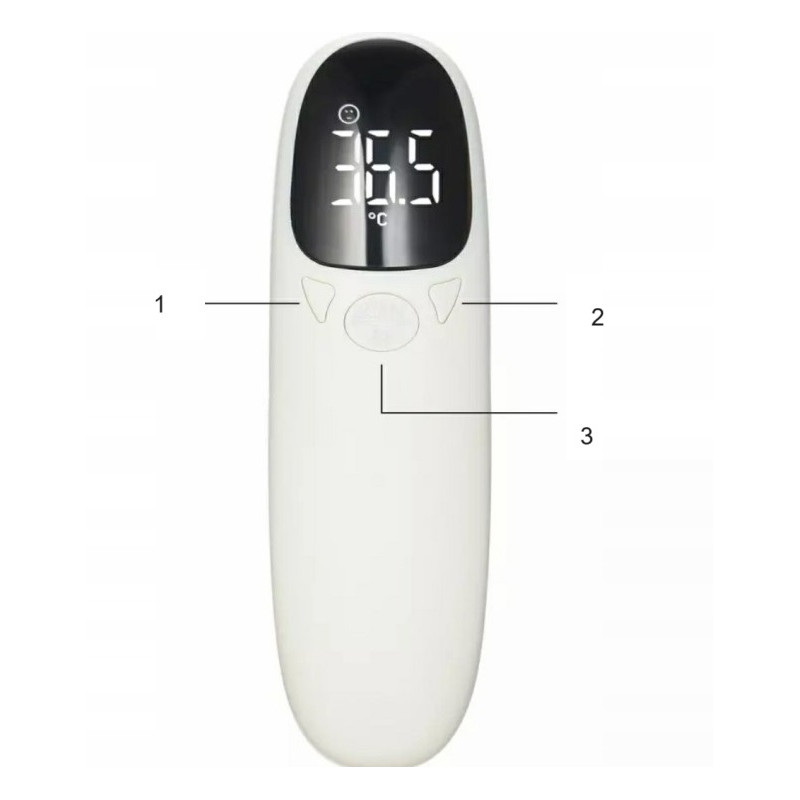 Termometr wykonuje pomiar w ciągu 1 sekundy z odległości kilku centymetrów może wykonać pomiar w odległości 3-5 centymetrów od czoła,