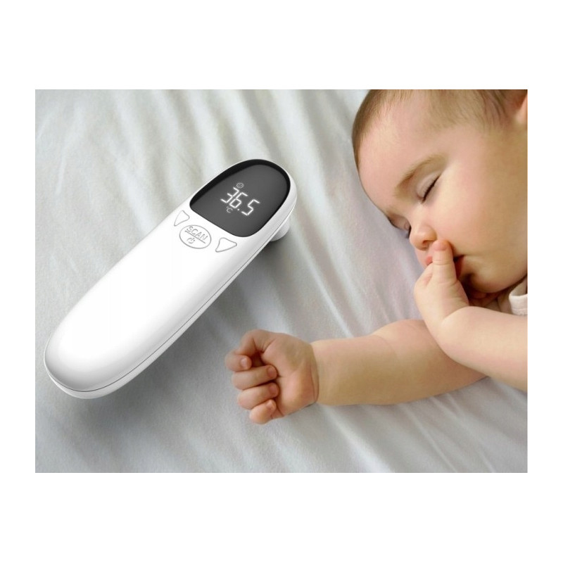 Bezkontaktowy pomiar jest idealny w przypadku dzieci, które mogą być niespokojne lub śpiące, ponieważ nie zakłóca to ich komfortu. Urządzenie to jest również praktyczne i łatwe w obsłudze, z dużym wyświetlaczem LCD, który jasno i czytelnie pokazuje wynik pomiaru, co jest szczególnie przydatne w nocy lub przy słabym oświetleniu.