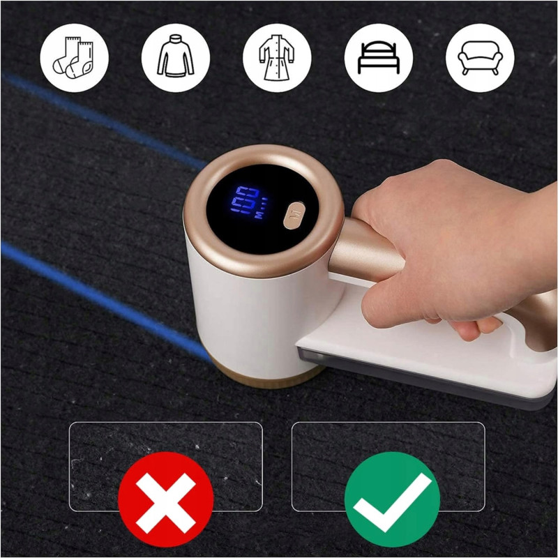 - Bezprzewodowe Użytkowanie: Golarka wyposażona jest w wydajny akumulator, który umożliwia bezprzewodowe korzystanie z urządzenia. Dzięki temu możesz swobodnie poruszać się podczas usuwania zmechaceń, bez ograniczeń związanych z kablem. Wbudowany wyświetlacz LED pokazuje poziom naładowania baterii oraz wybrany tryb pracy (I/II/III), co pozwala na łatwe monitorowanie stanu urządzenia i dostosowanie jego działania do potrzeb. Bezprzewodowe użytkowanie jest idealne do szybkiego i wygodnego czyszczenia ubrań, tapicerki czy koców w dowolnym miejscu w domu.