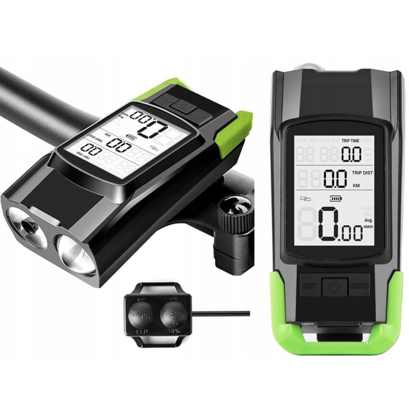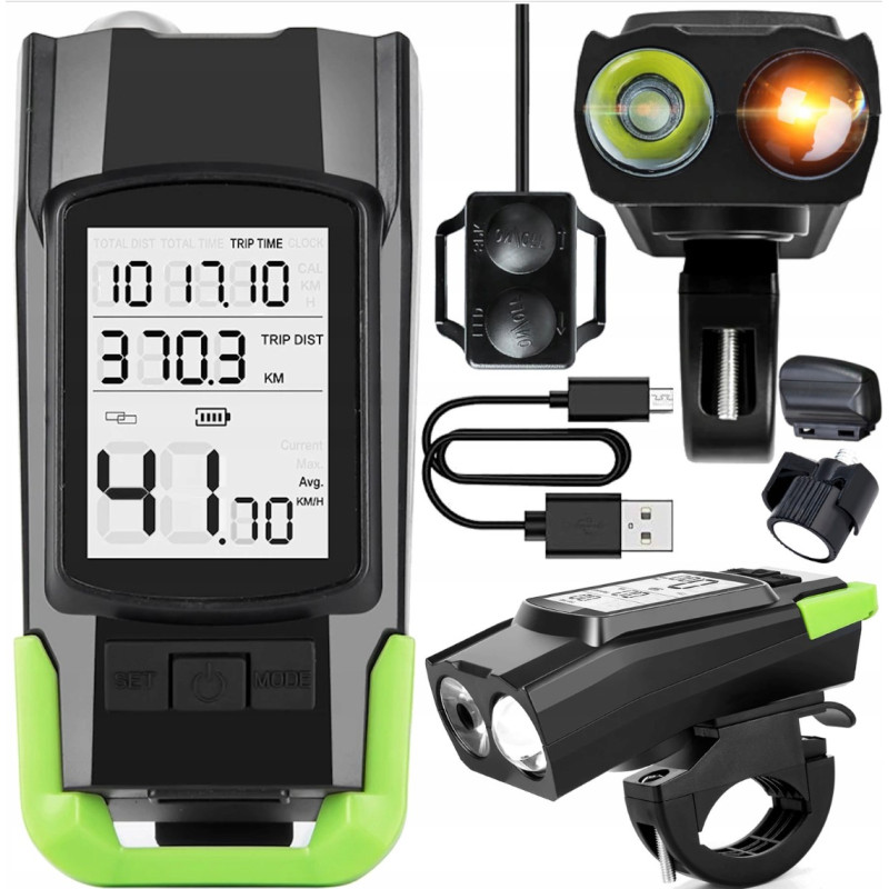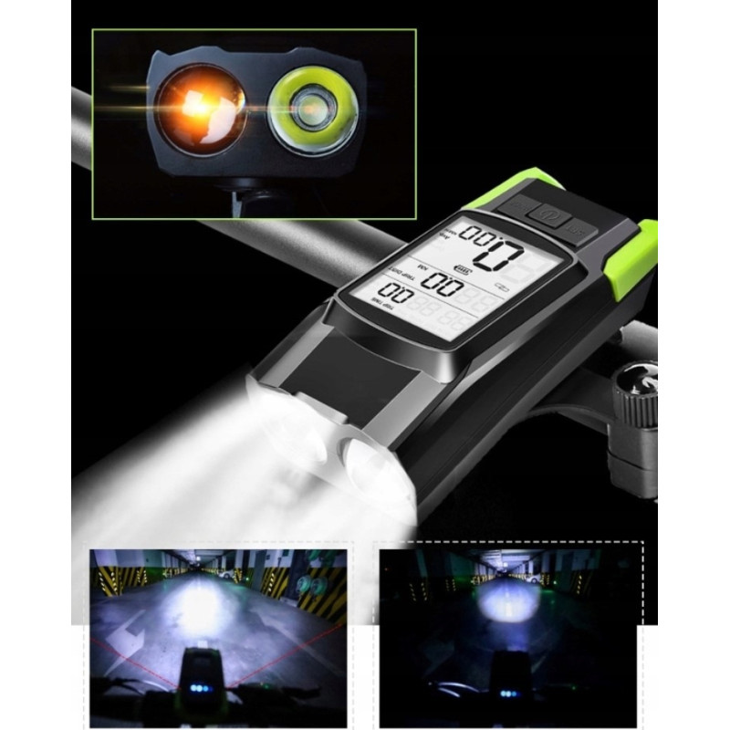 Mocna Lampa Rowerowa Przednia + Licznik + Dzwonek BK-1718B