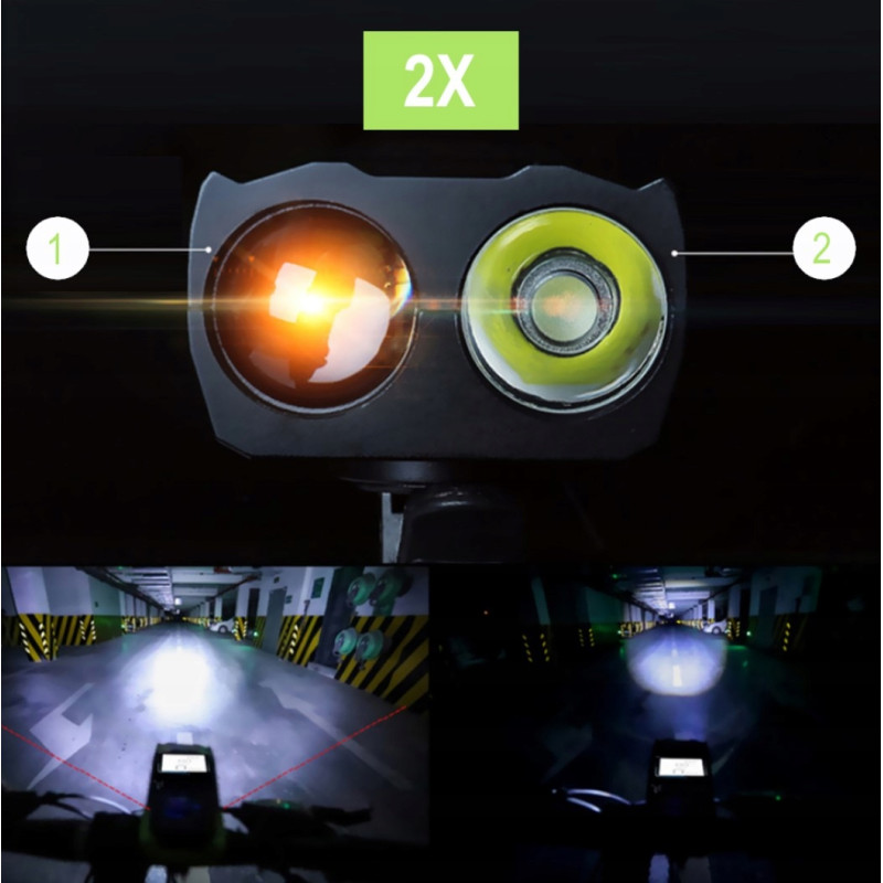 - Wydajne oświetlenie LED: Dwa rodzaje soczewek – dalekiego zasięgu i szerokokątna – zapewniają optymalne oświetlenie zarówno na dalekich trasach, jak i w miejskiej dżungli.