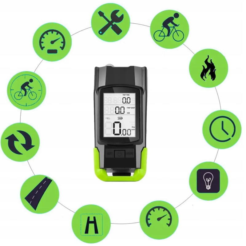 - Inteligentny licznik rowerowy: Mierzy dystans, prędkość aktualną, maksymalną oraz średnią, i wiele innych parametrów, które pomogą Ci monitorować Twój postęp.